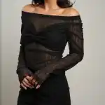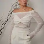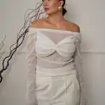 Вырез «лодочка» красиво обрамляет линию шеи, а специальная резинка на плечах обеспечивает идеальную посадку — лонгслив остаётся на месте и не спадает даже при движении.