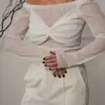 Лёгкая драпировка в области живота создаёт мягкий визуальный эффект сборки, который вытягивает силуэт и добавляет образу гармонии и динамики.