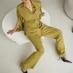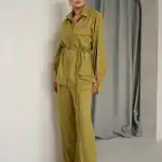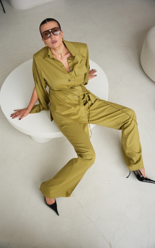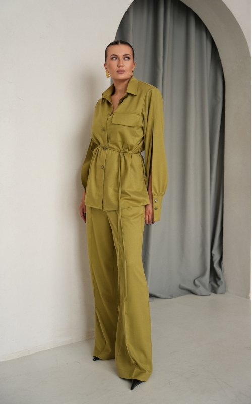 К рубашке можно подобрать брюки палаццо из той же ткани, создавая полноценный костюм с современным настроением.
