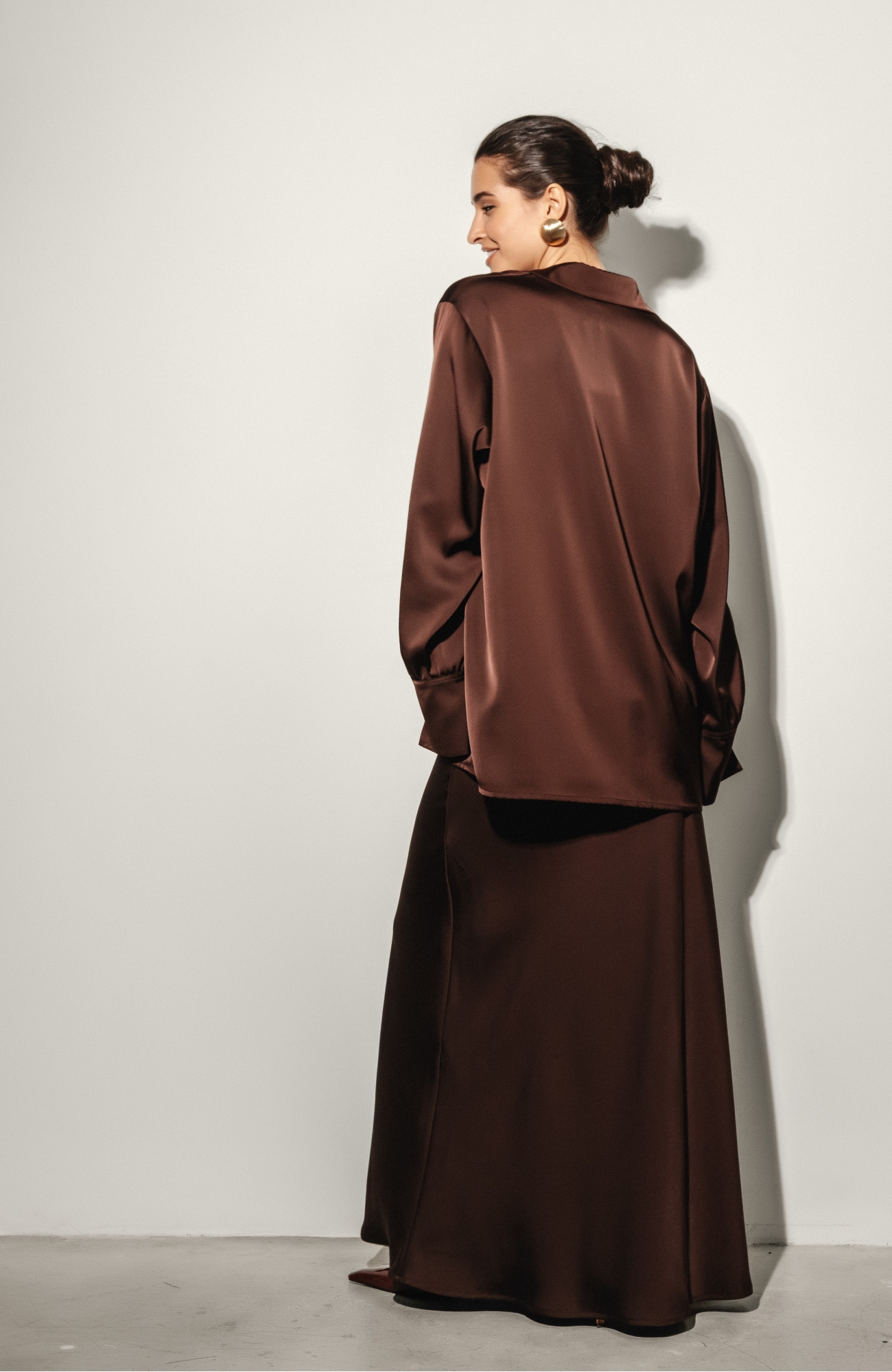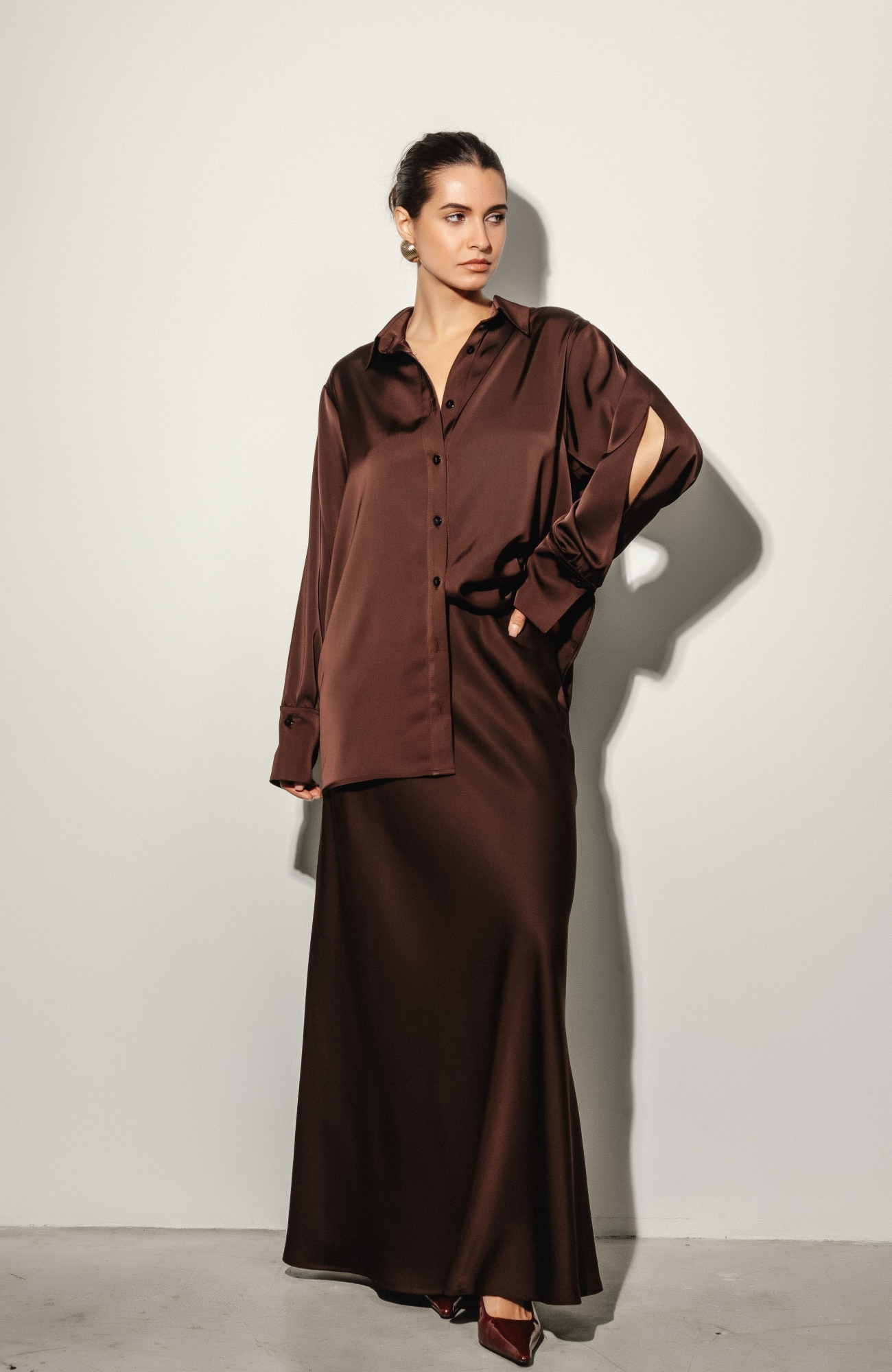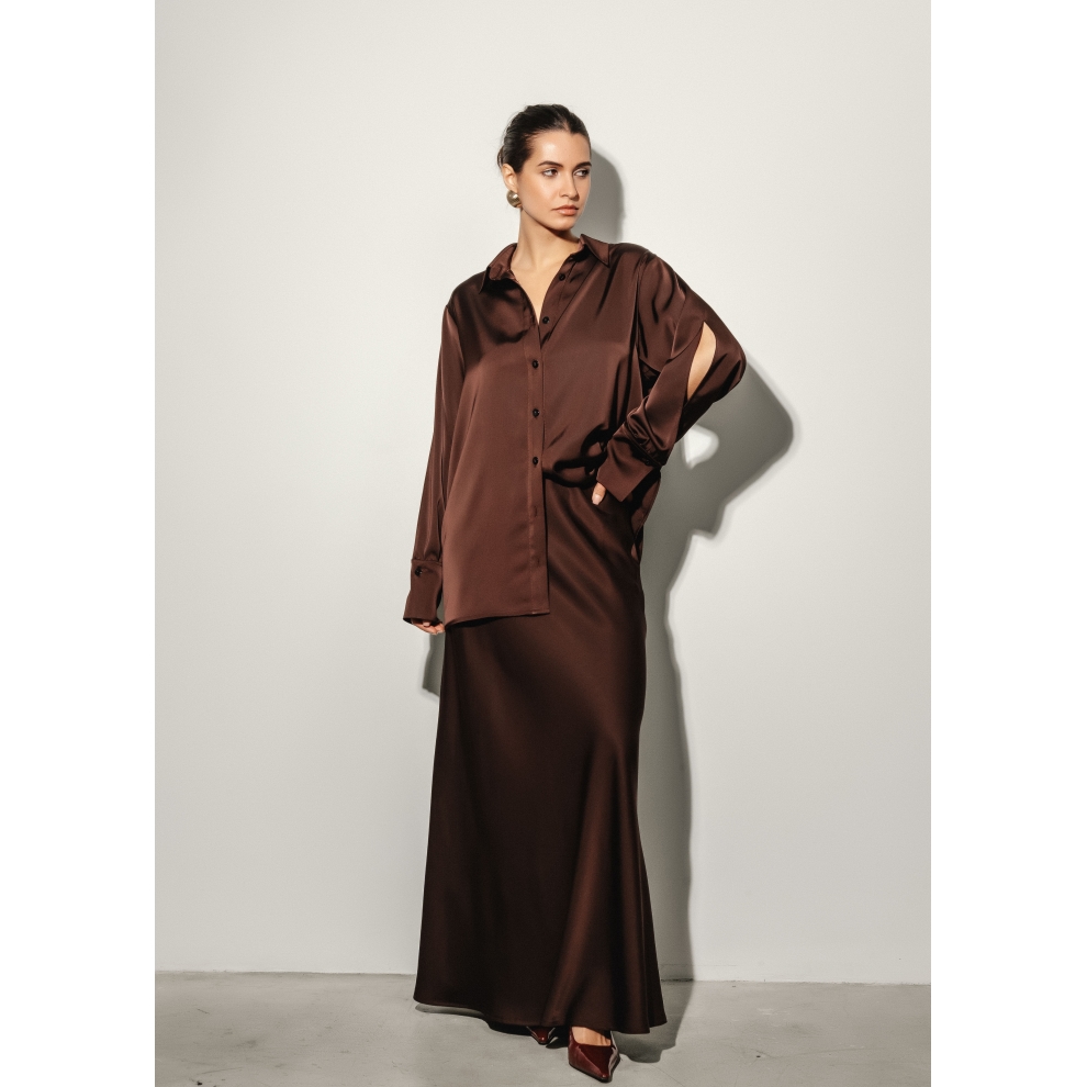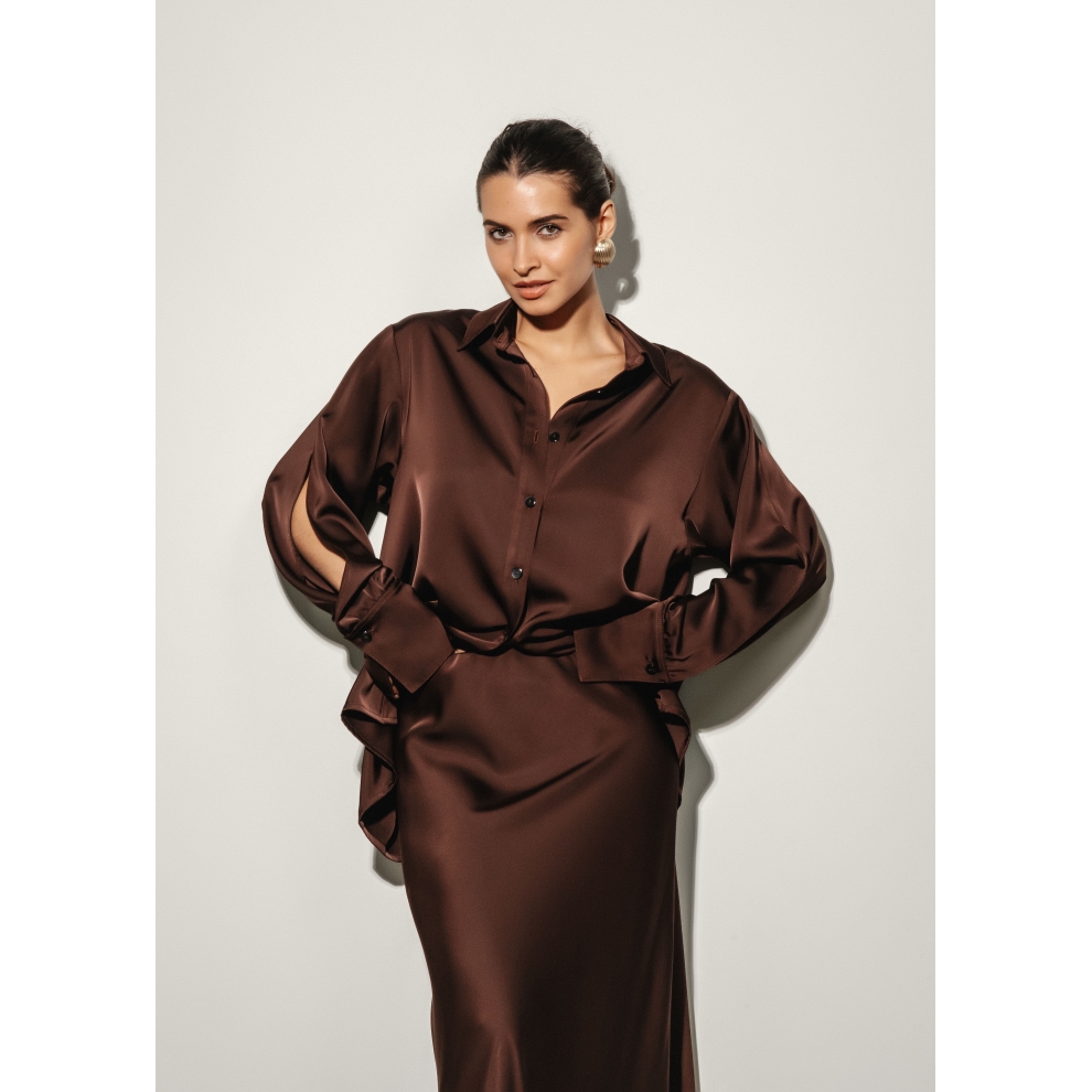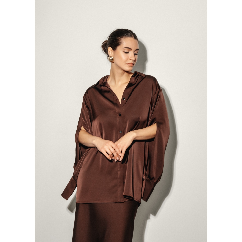 Рубашка шелковая шоколадная