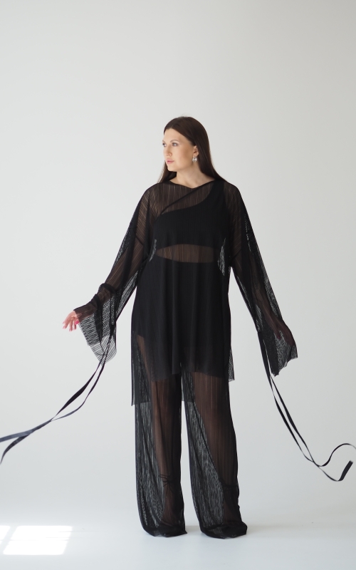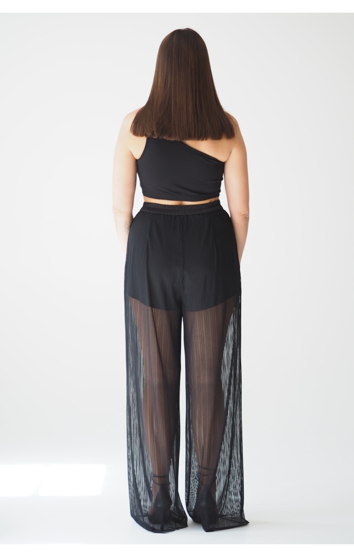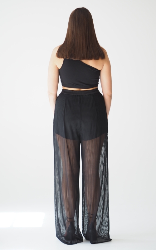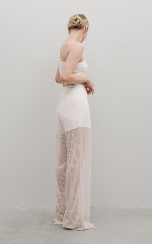 Брюки выполнены из мягкой сетки, внутри пришиты шорты комфортной длины. Сзади на линии талии расположена резинка для лучшей посадки. Дополните образ туникой или лонгсливом.