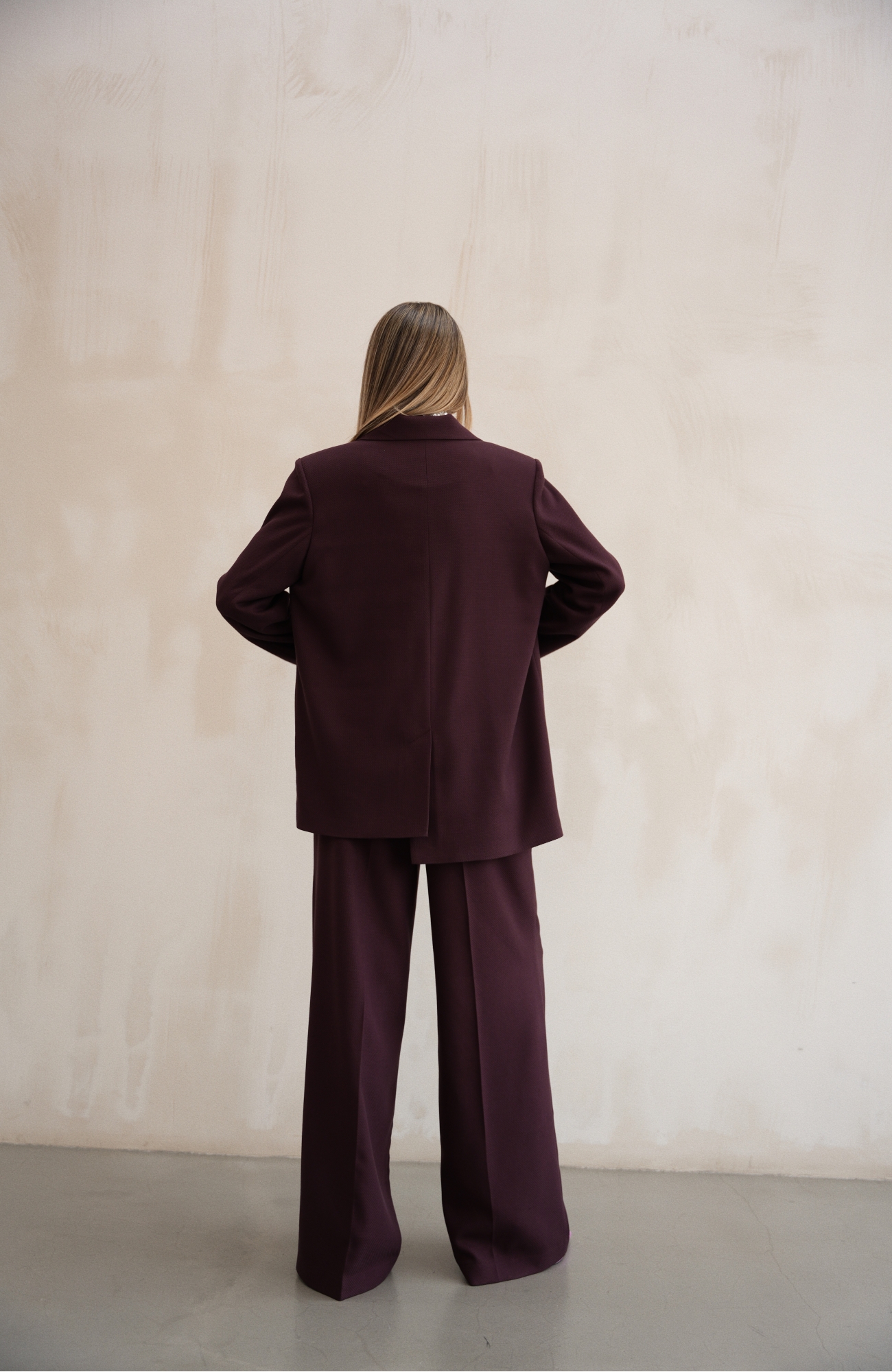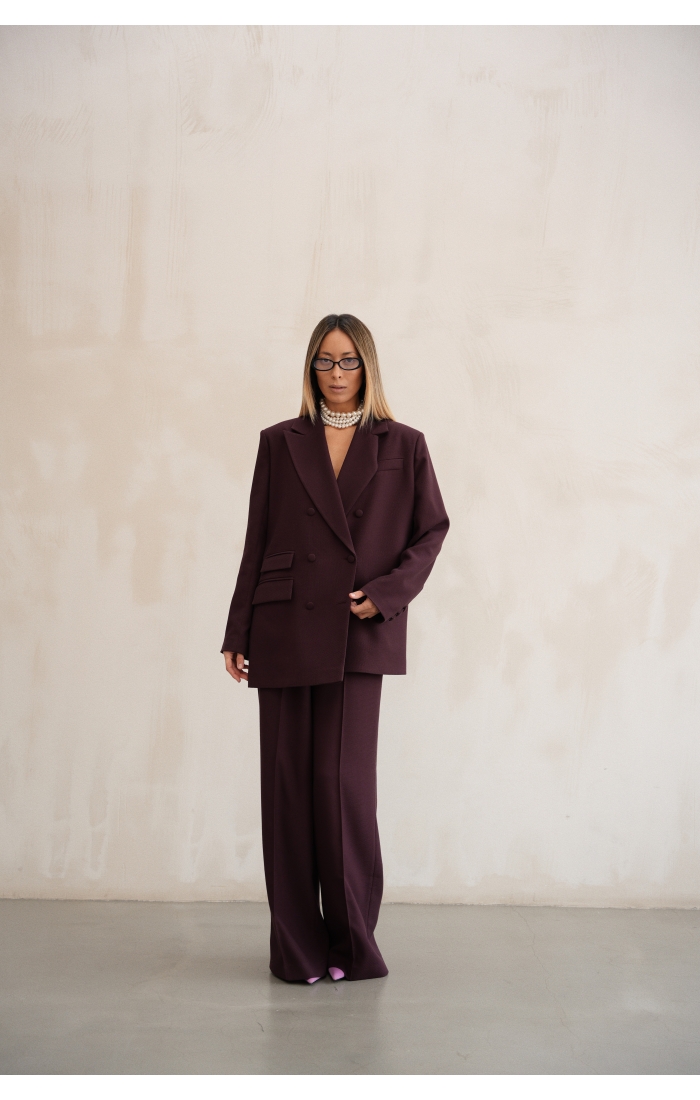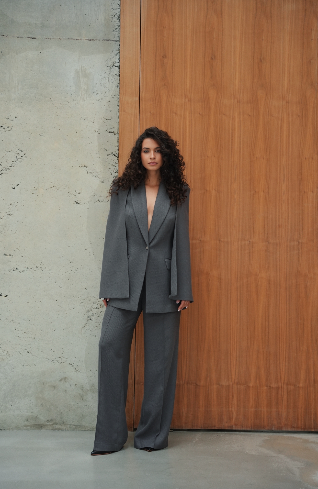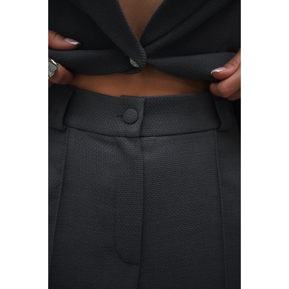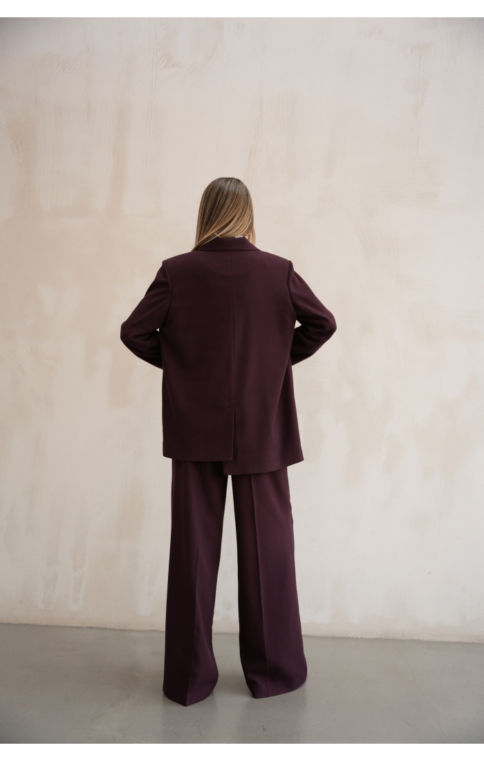 Брюки палаццо выполнены из поливискозной мягкой костюмной ткани. Модель имеет застроченную стрелку. Застегиваются на молнию и пуговицу. Сзади на линии талии расположена резинка для комфортной посадки. В боковых швах имеют два глубоких боковых кармана и два декоративных кармана-обманки на спинке изделия.