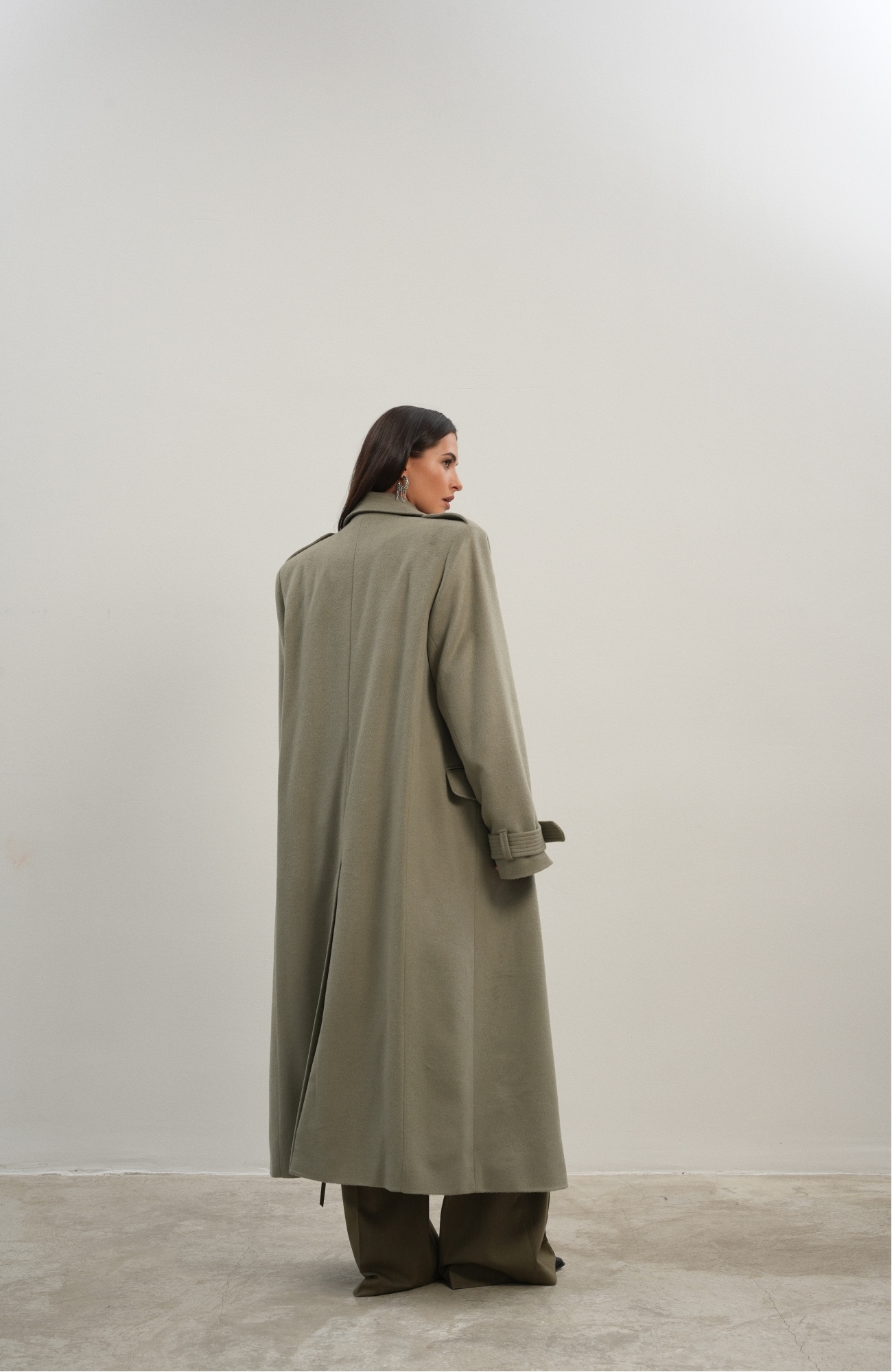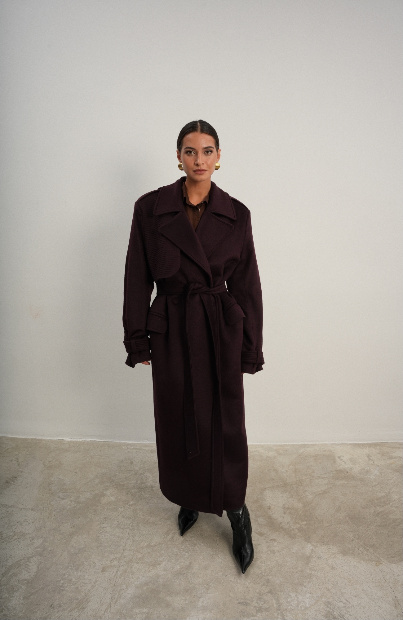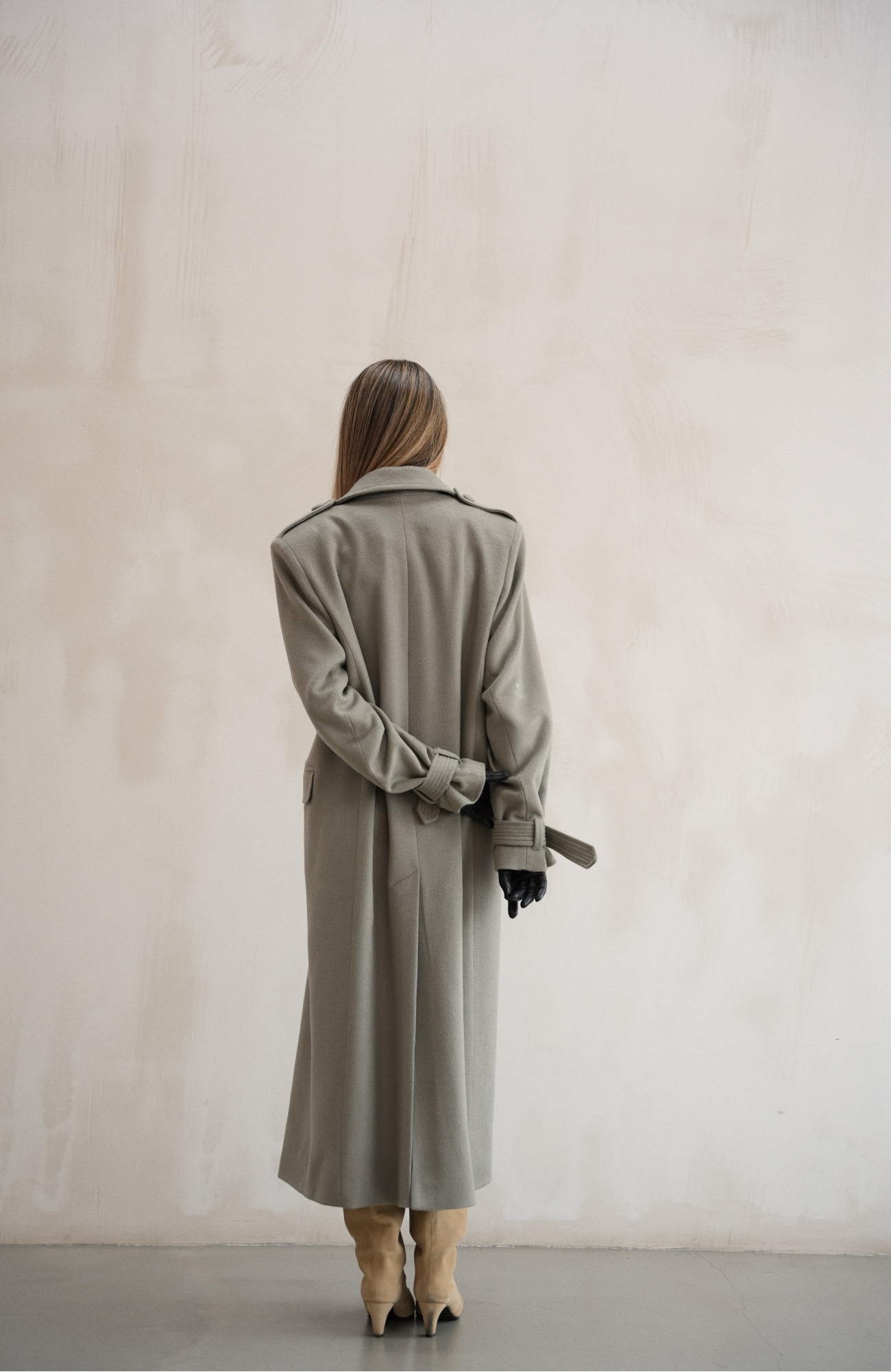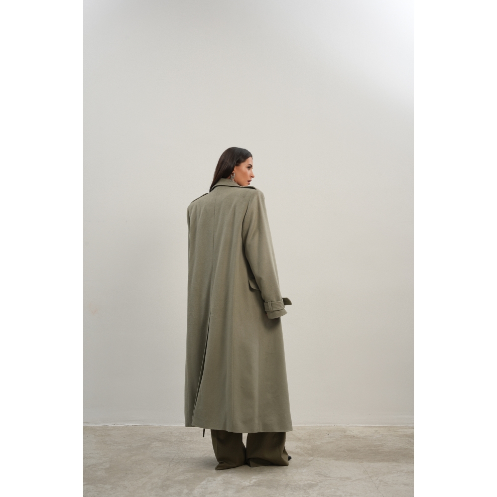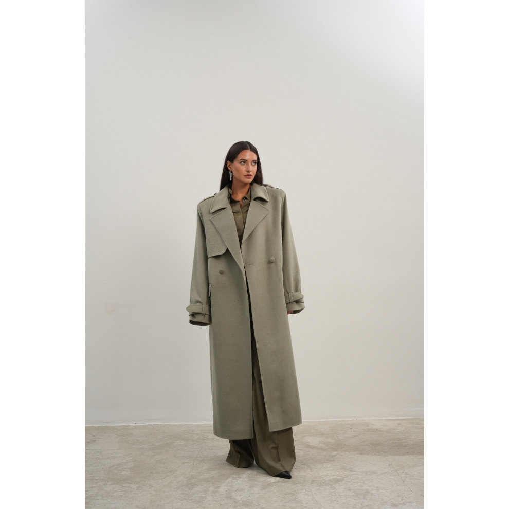Пальто-тренч выполнено из качественной пальтовой ткани с большим содержанием шерсти. Простроченная кокетка, погоны, хлястики усложняют и добавляют характера образу. Температурный режим до - 10*.