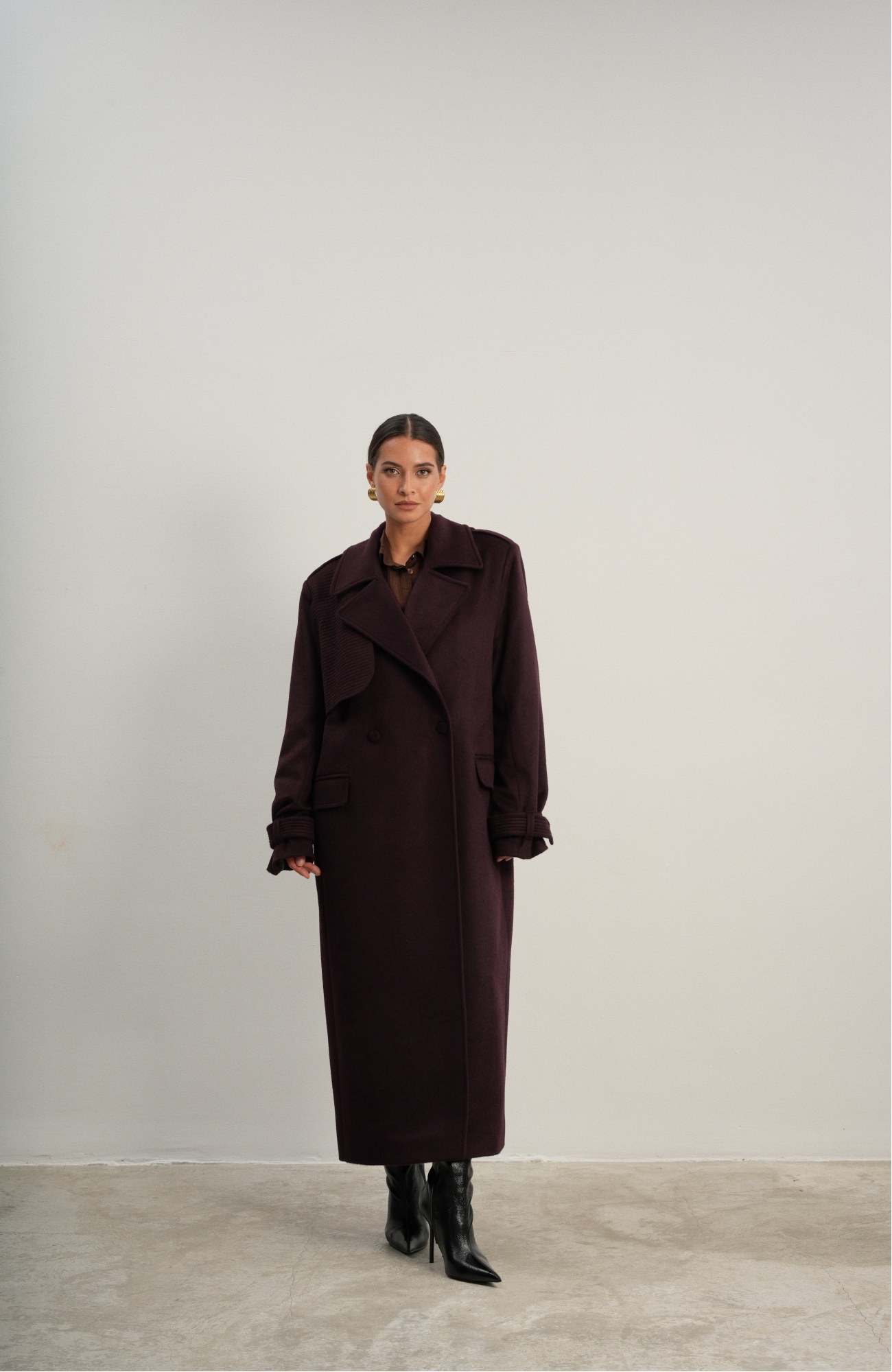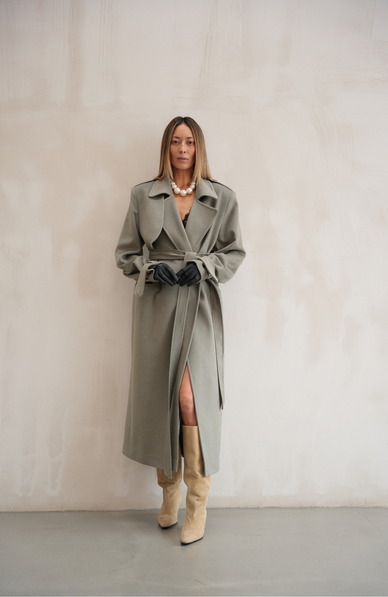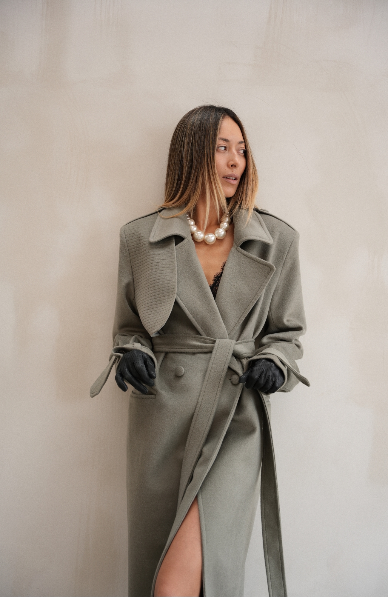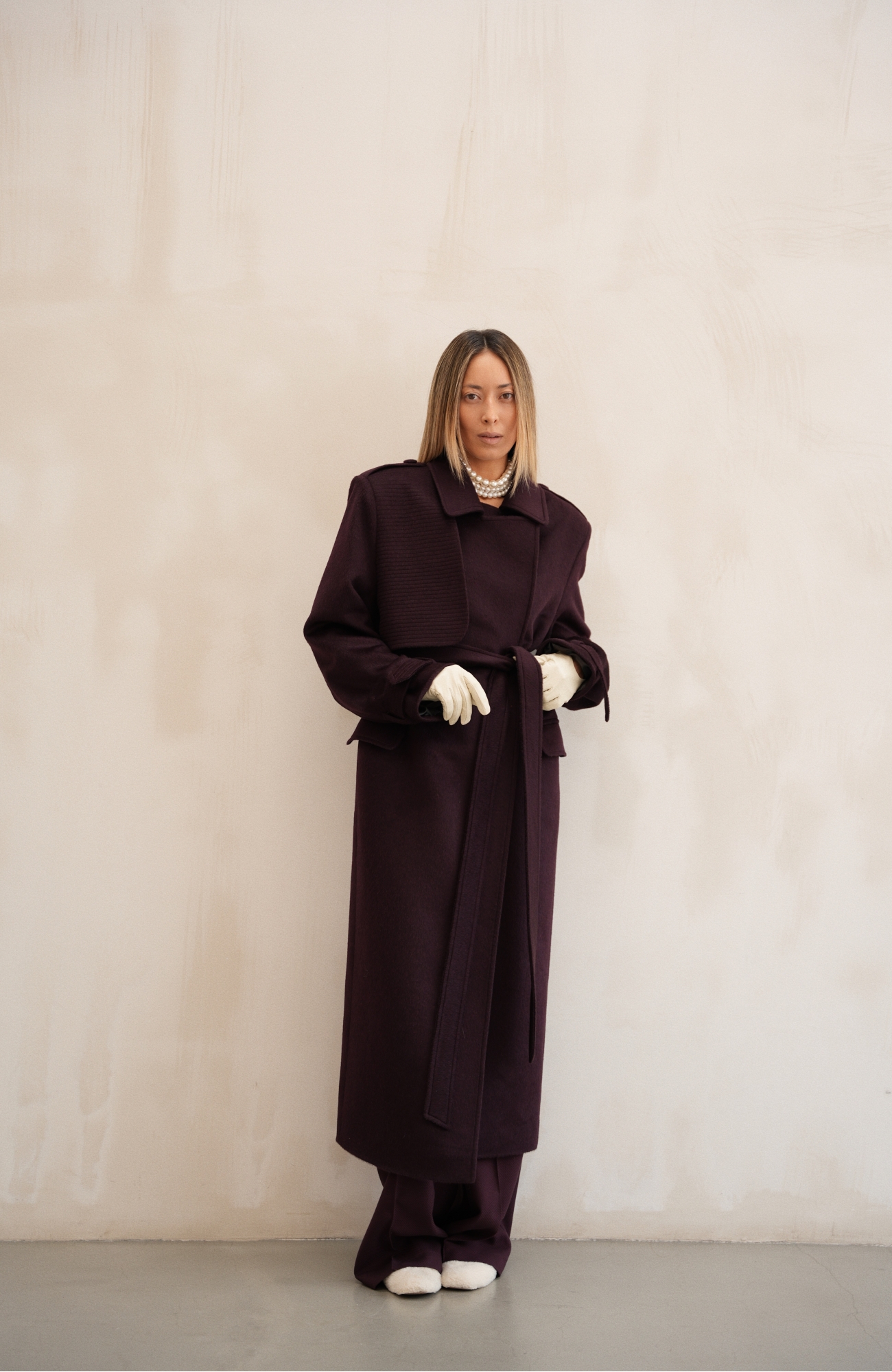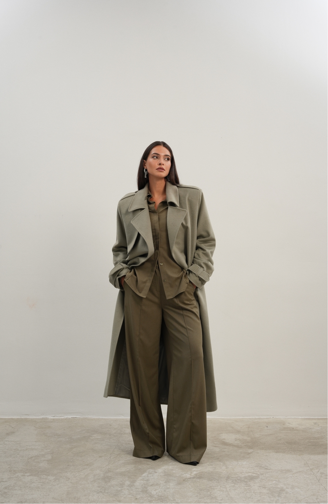 Пальто-тренч выполнено из качественной пальтовой ткани с большим содержанием шерсти. Простроченная кокетка, погоны, хлястики усложняют и добавляют характера образу. Температурный режим до - 10*.
