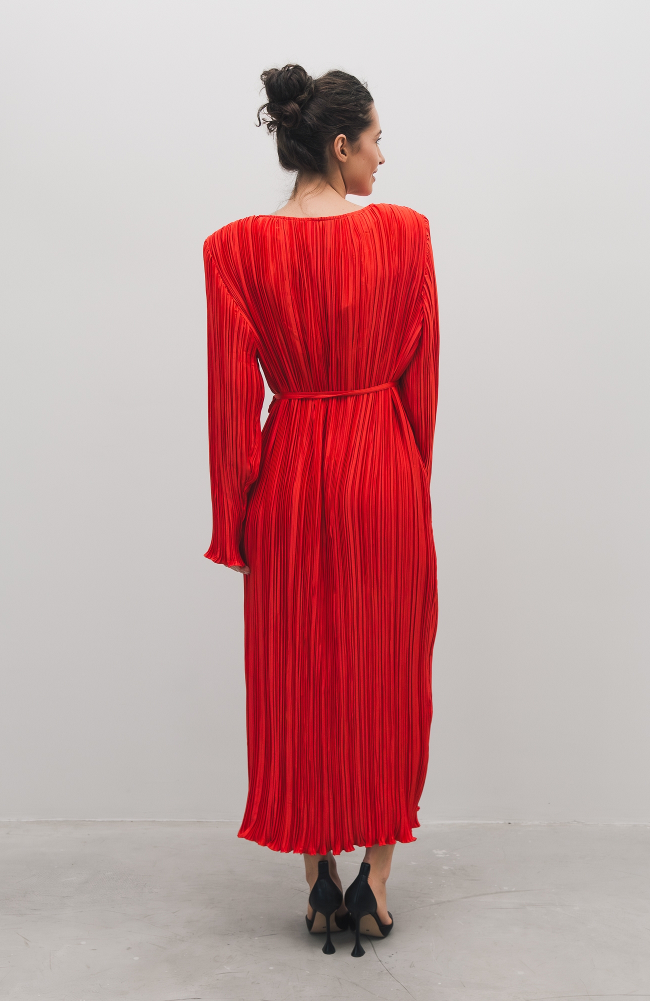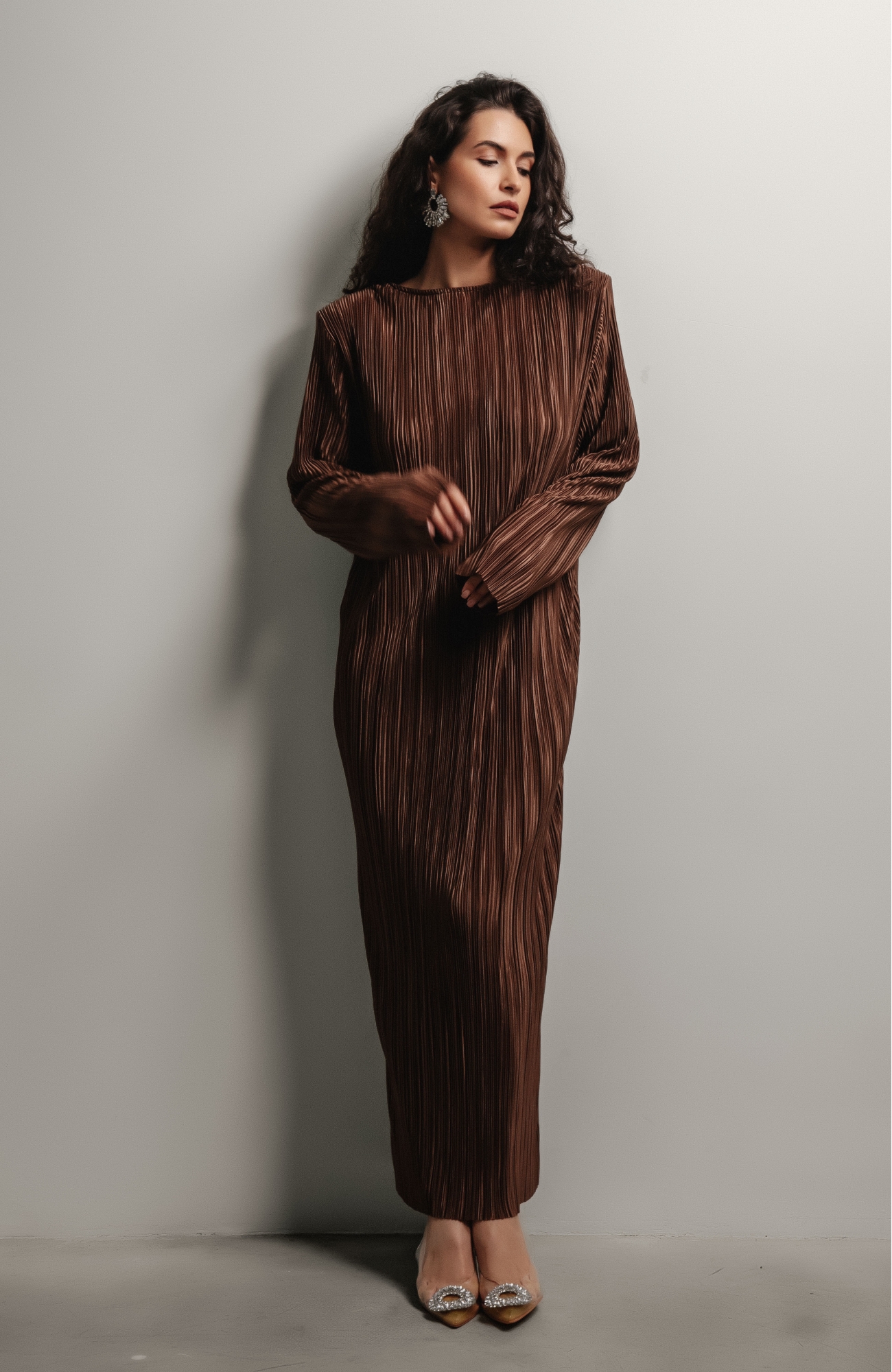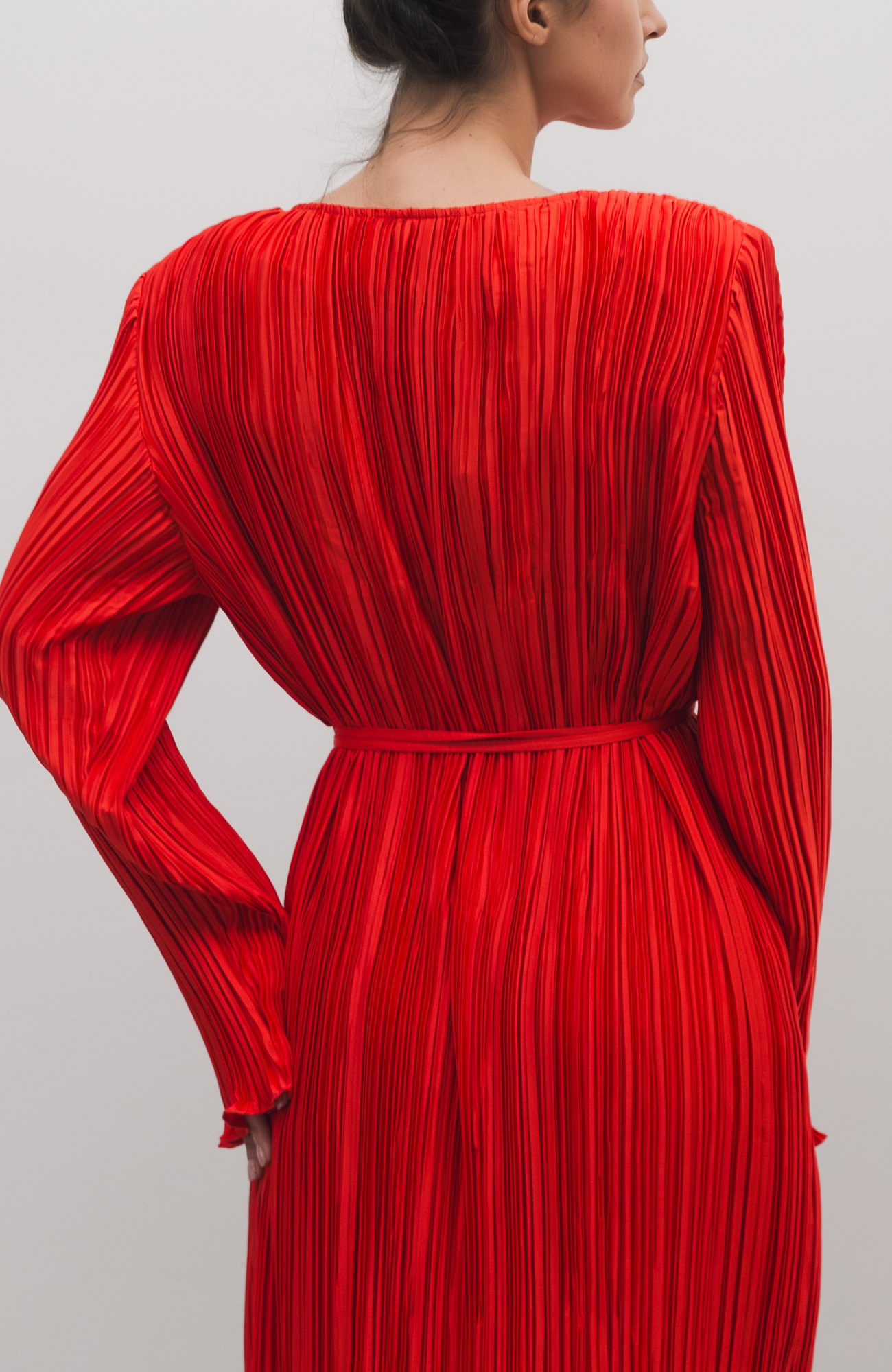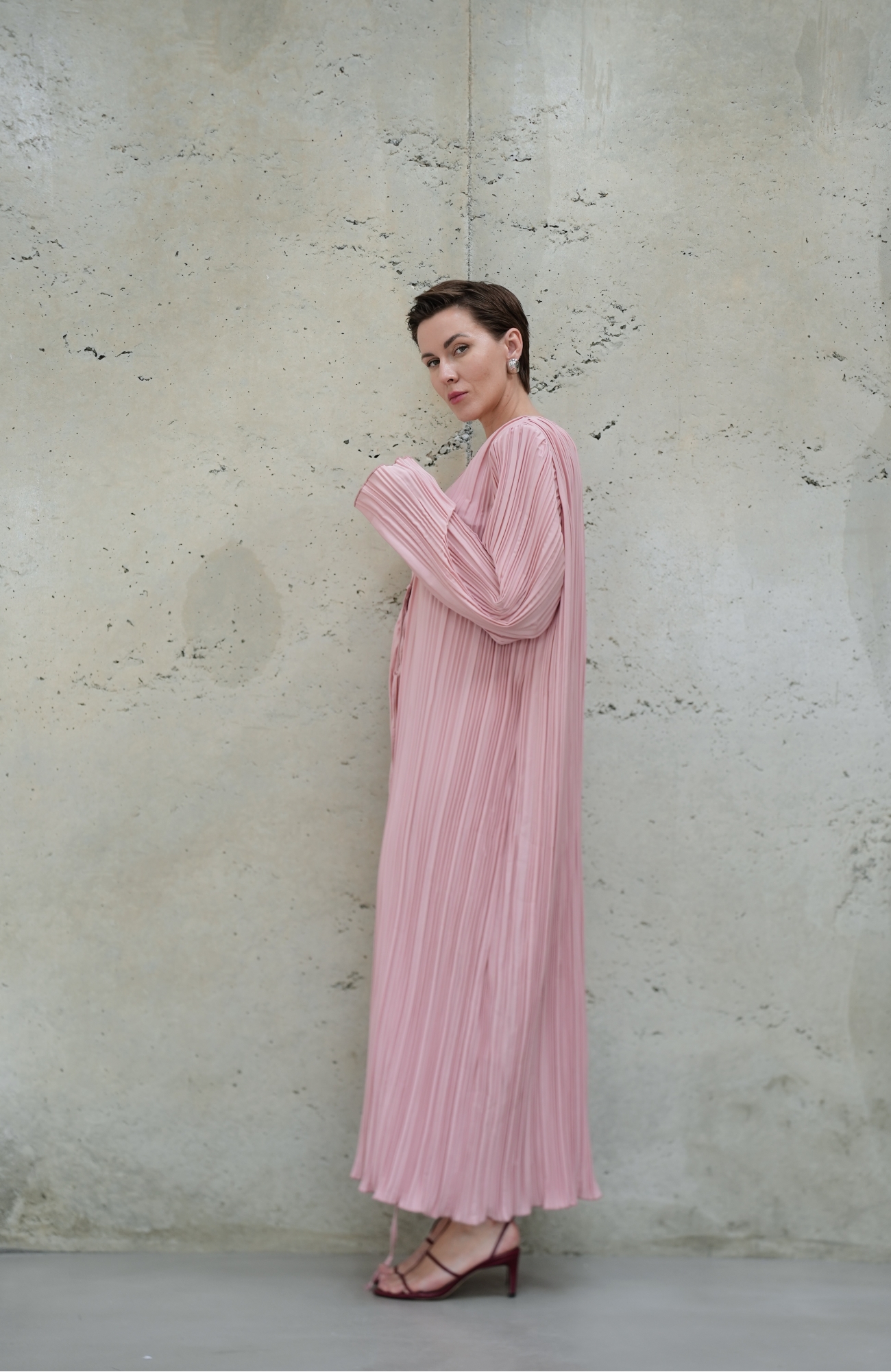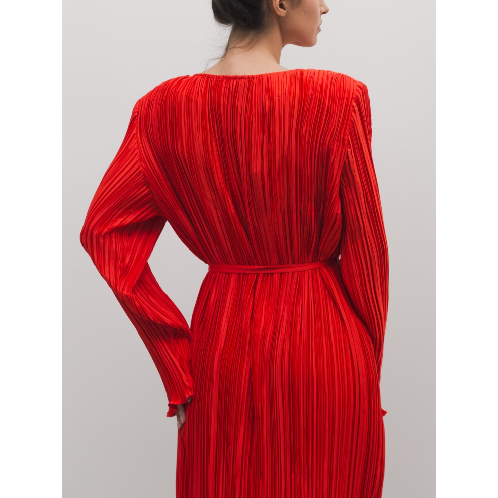 Платье со шнуровкой на груди выполнено из легкой гофрированной ткани. Модель свободного кроя, что позволяет посадить его на разные фигуры и размеры. Основным преимуществом является то, что платье можно носить шнуровкой вперед и назад, а также за счет длинных шнурков его можно приталить.