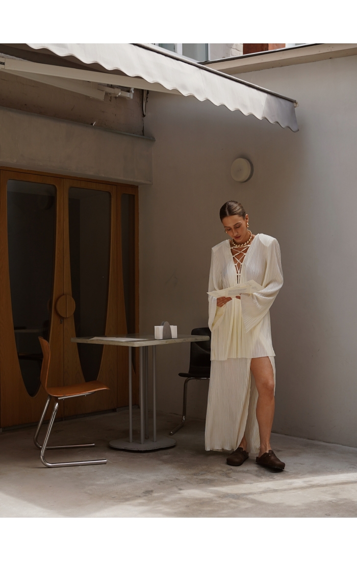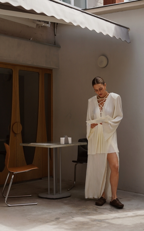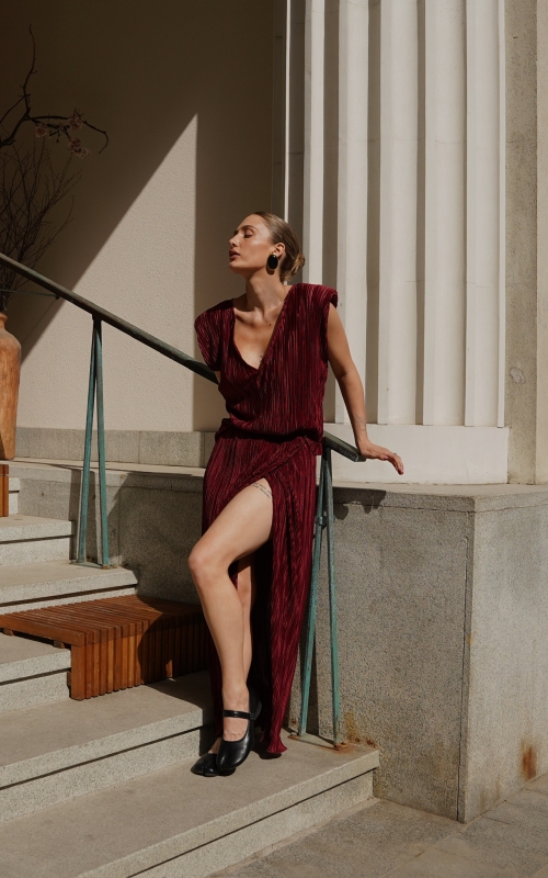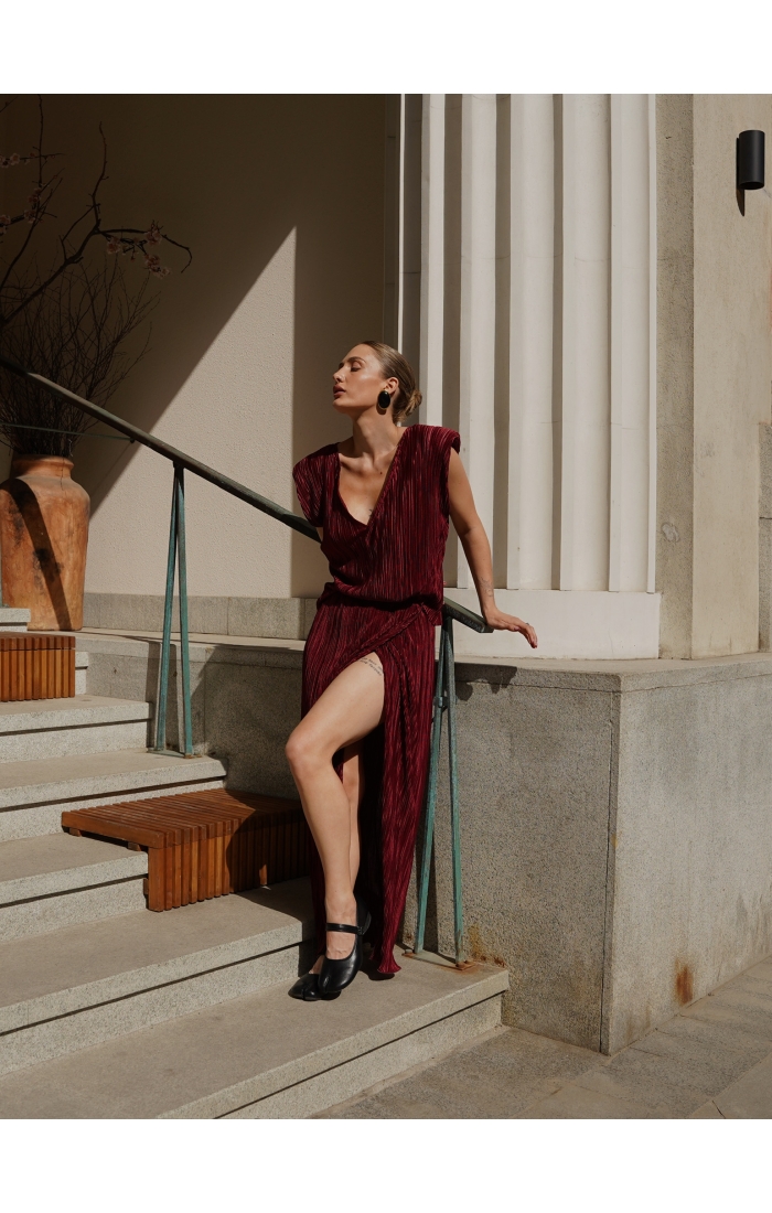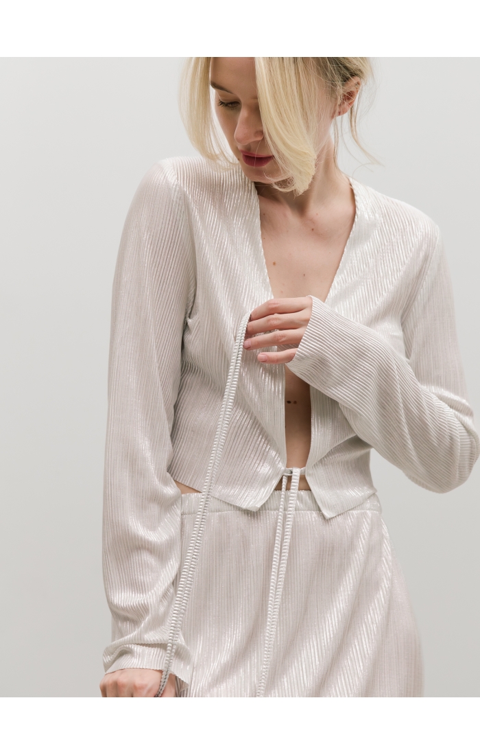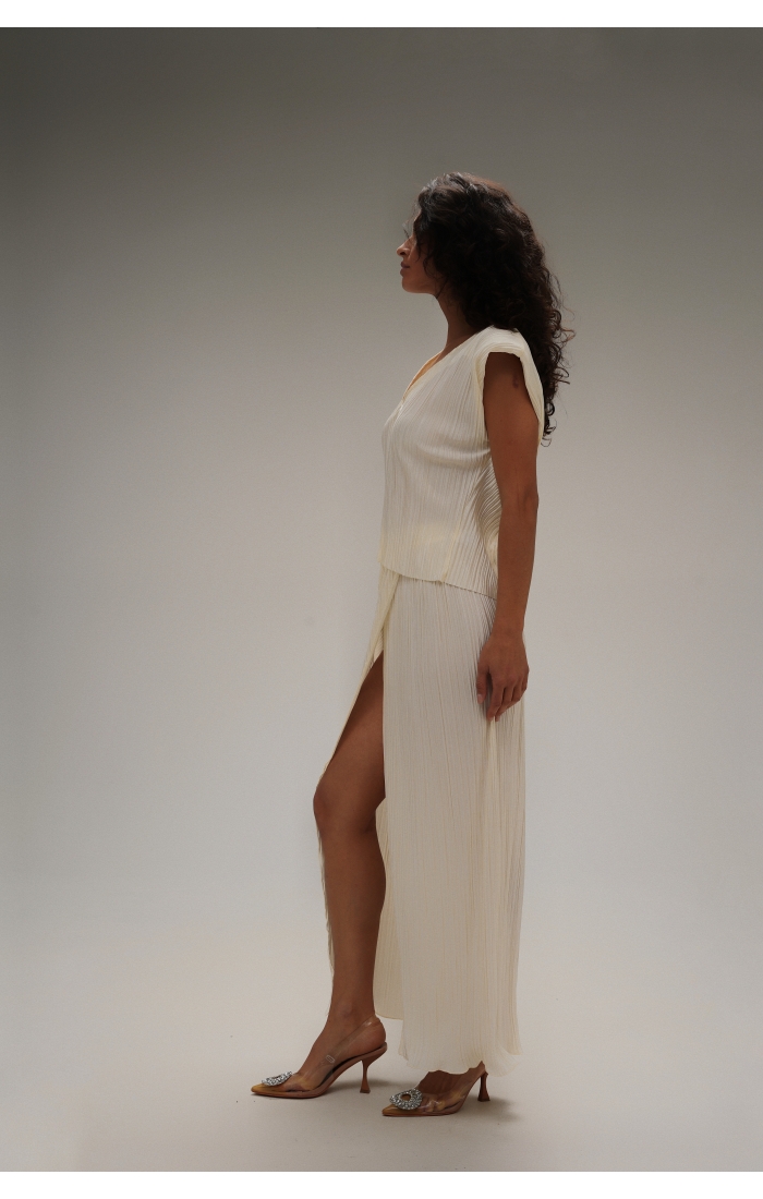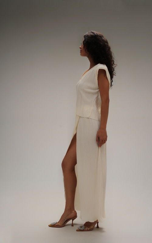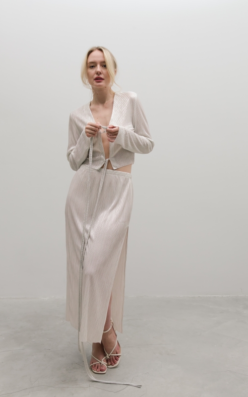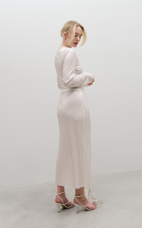 Юбка на запах из легкой гофрированной ткани. Пояс на резинке.