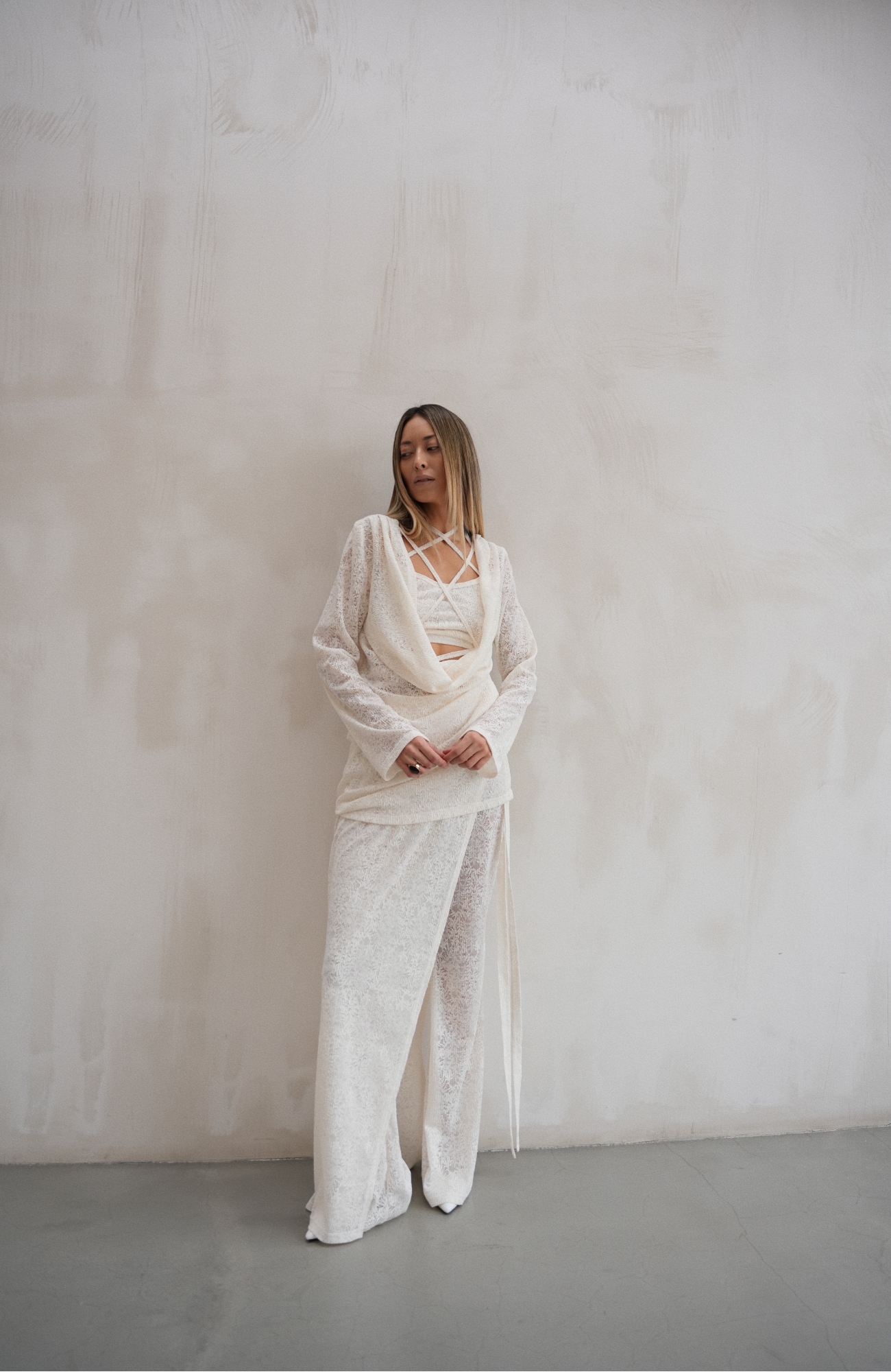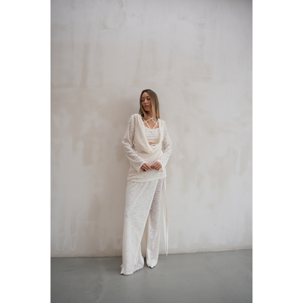 Юбка-баска из эластичного гипюра. Баску можно приобрести как самостоятельное изделие внедряя её на джинсы, юбки, платья и др. Также Вы можете дополнить образ изделиями из коллекции "Афродита", а именно: топ, брюки-клеш, платье мини, платье-кимоно.