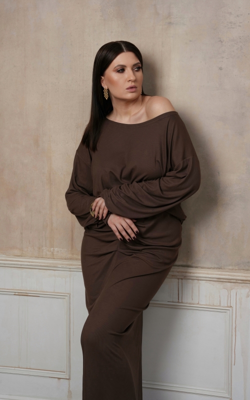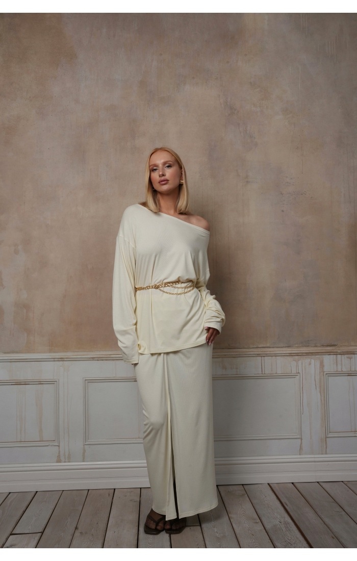 Юбка со сборкой из вискозного трикотажа. Драпировку можно надевать вперед и на бок. Дополните образ лонгсливом "Клеопатра".