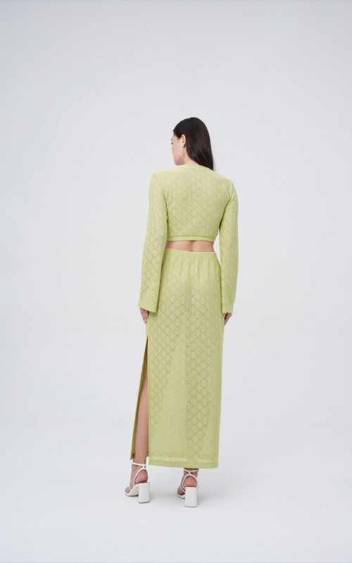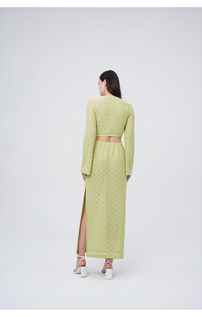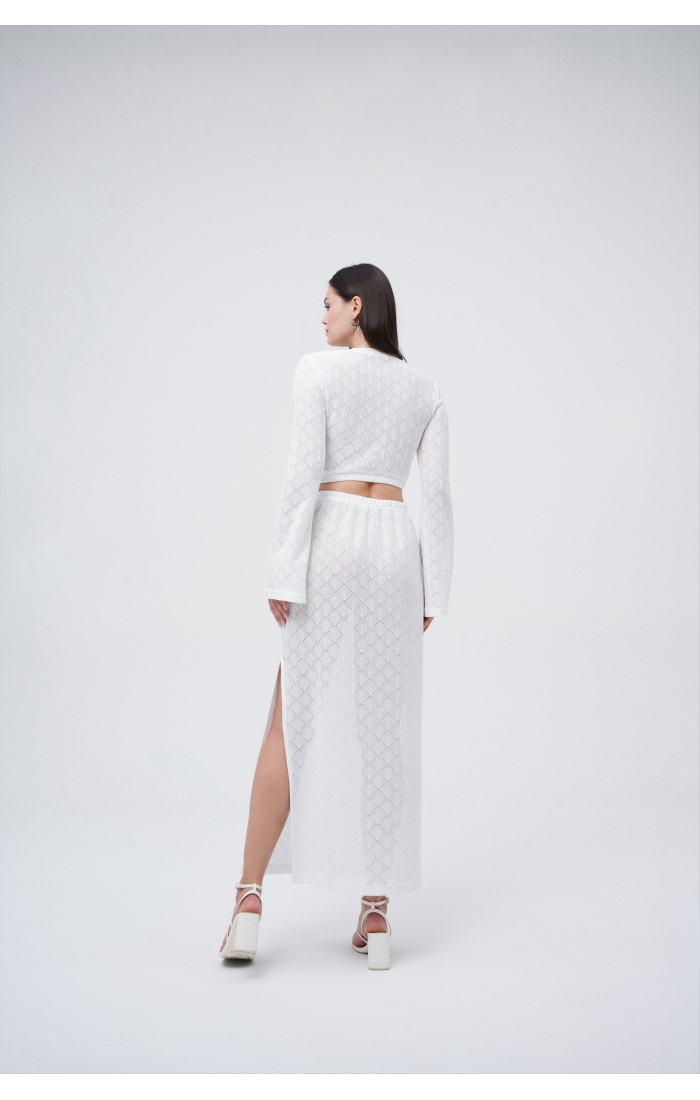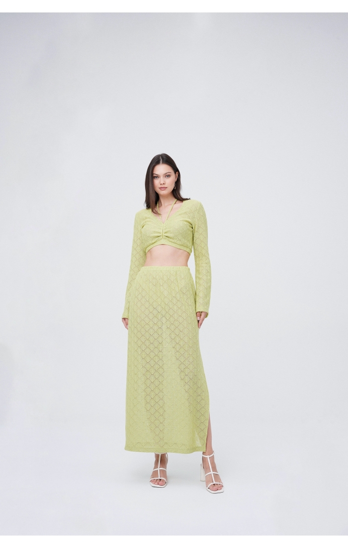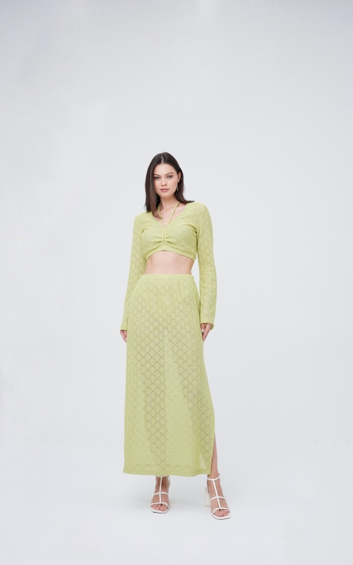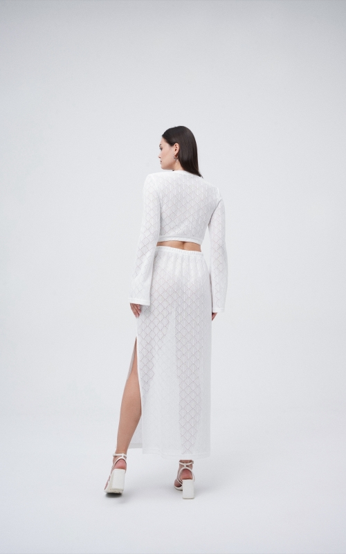 Юбка прямого кроя на резинке выполнена из мягкого вискозного трикотажа. Сбоку расположен разрез. Дополните образ блузой или джемпером из вязанного трикотажа.