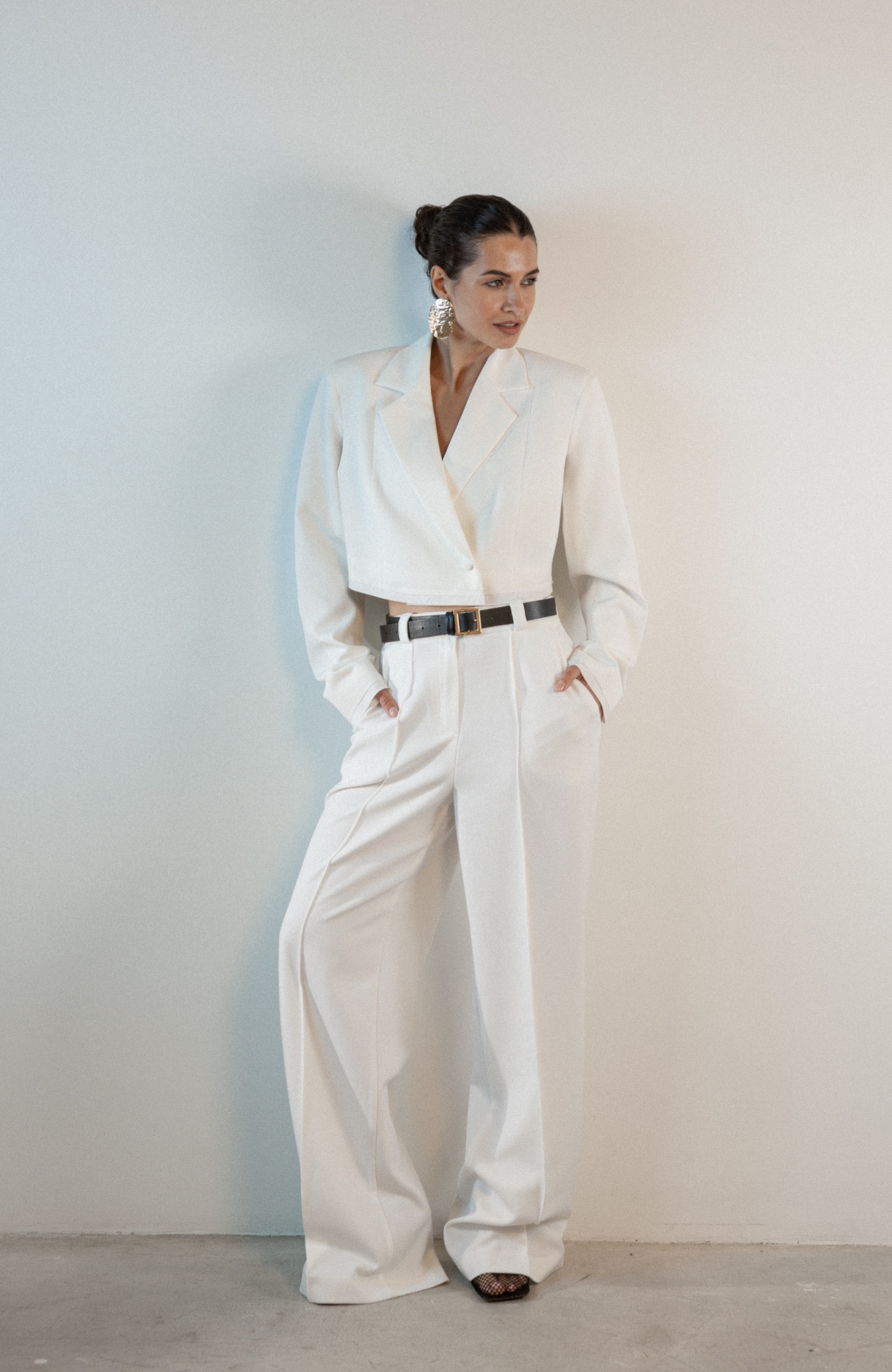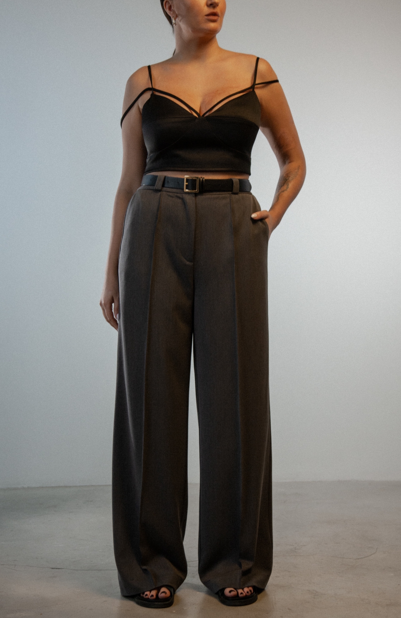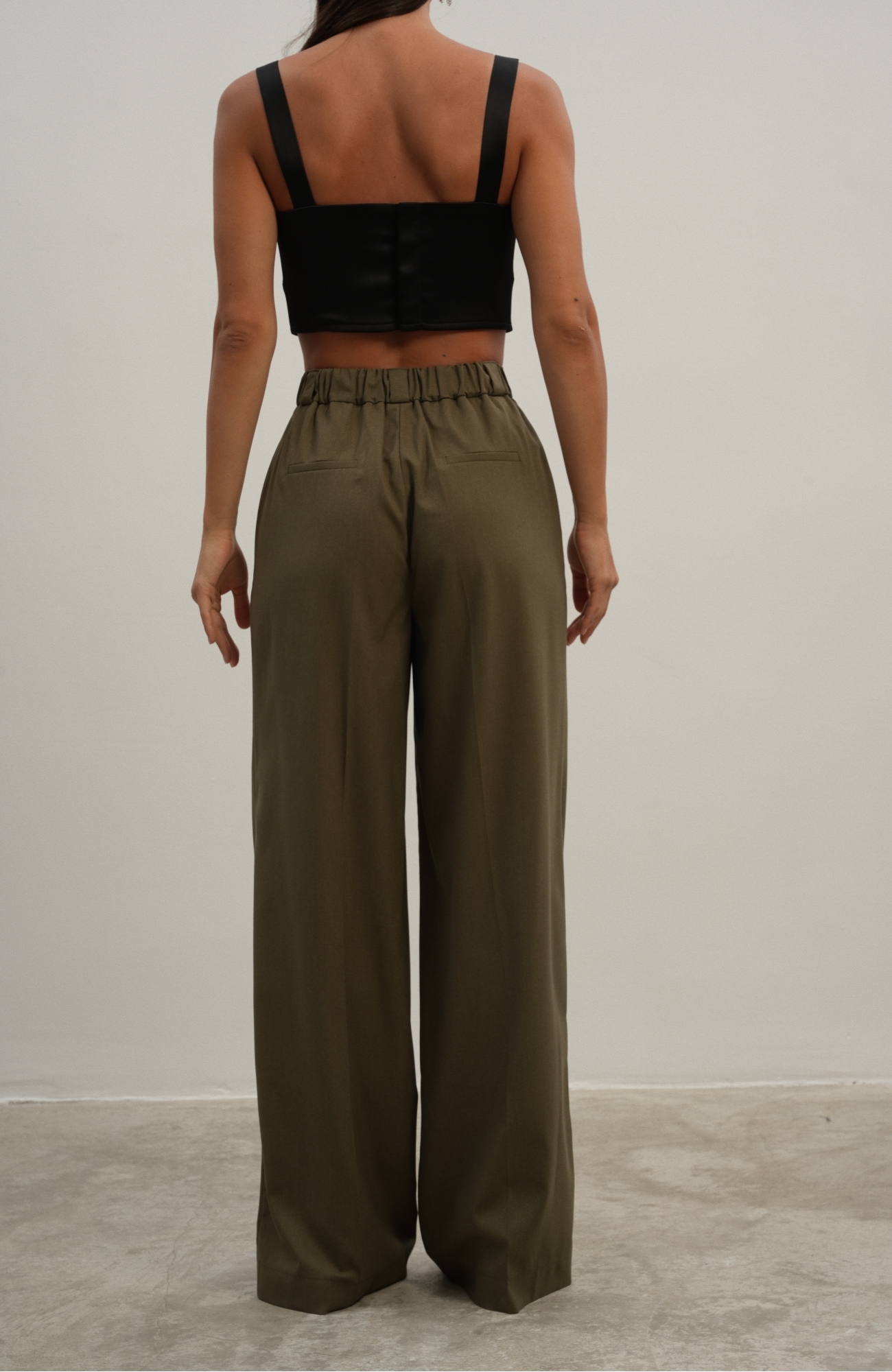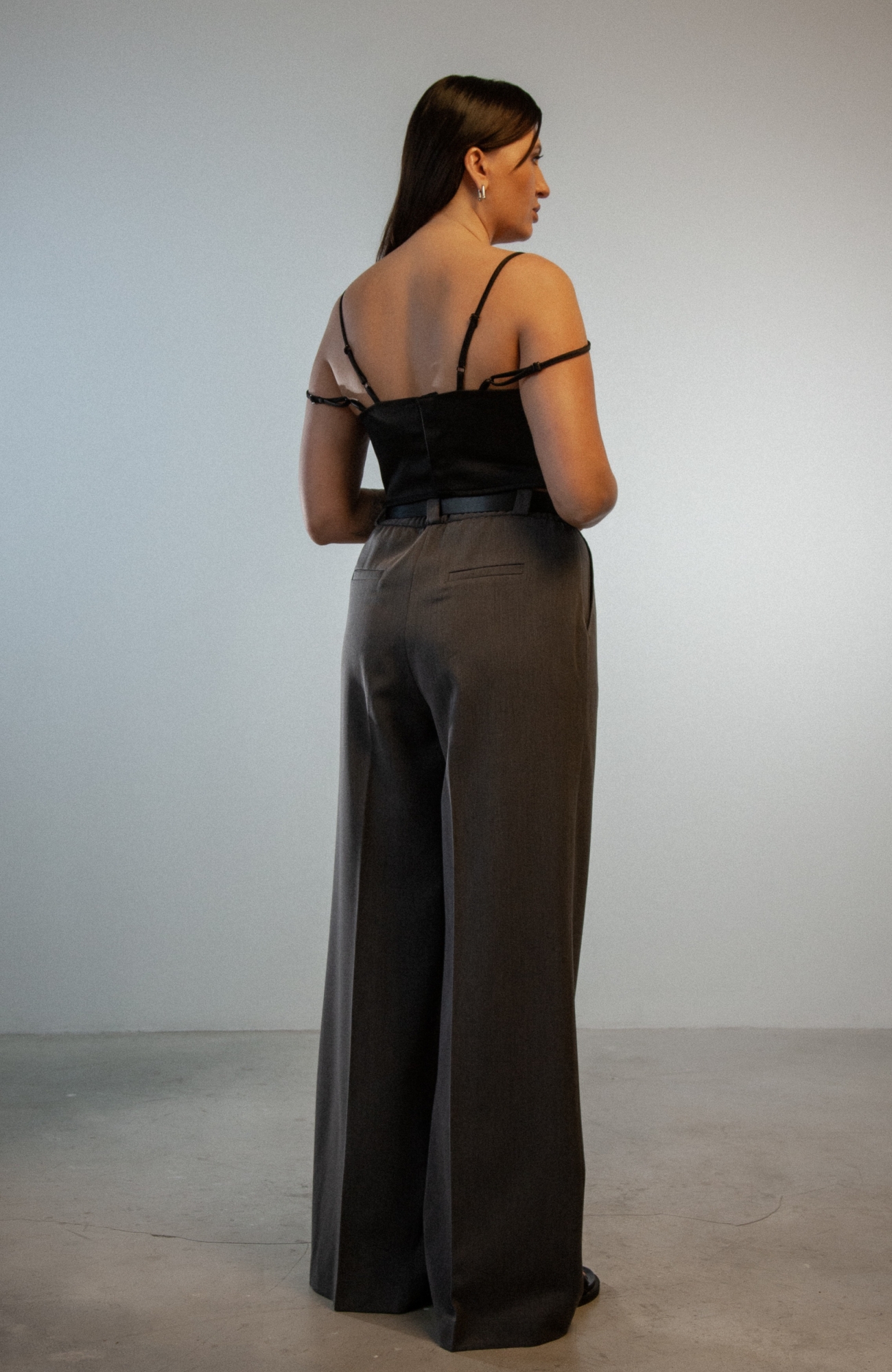 Брюки палаццо выполнены из поливискозной мягкой костюмной ткани. Модель имеет застроченную стрелку. Застегиваются на молнию и пуговицу. Сзади на линии талии расположена резинка для комфортной посадки. В боковых швах имеют два глубоких боковых кармана и два декоративных кармана-обманки на спинке изделия.