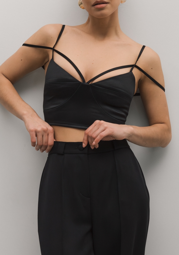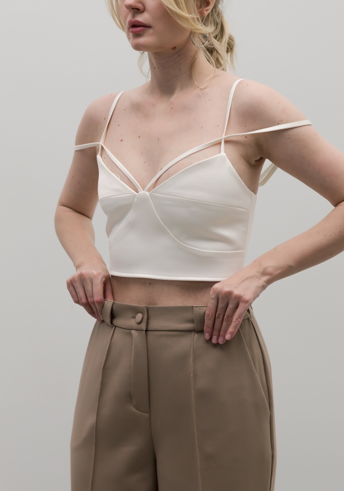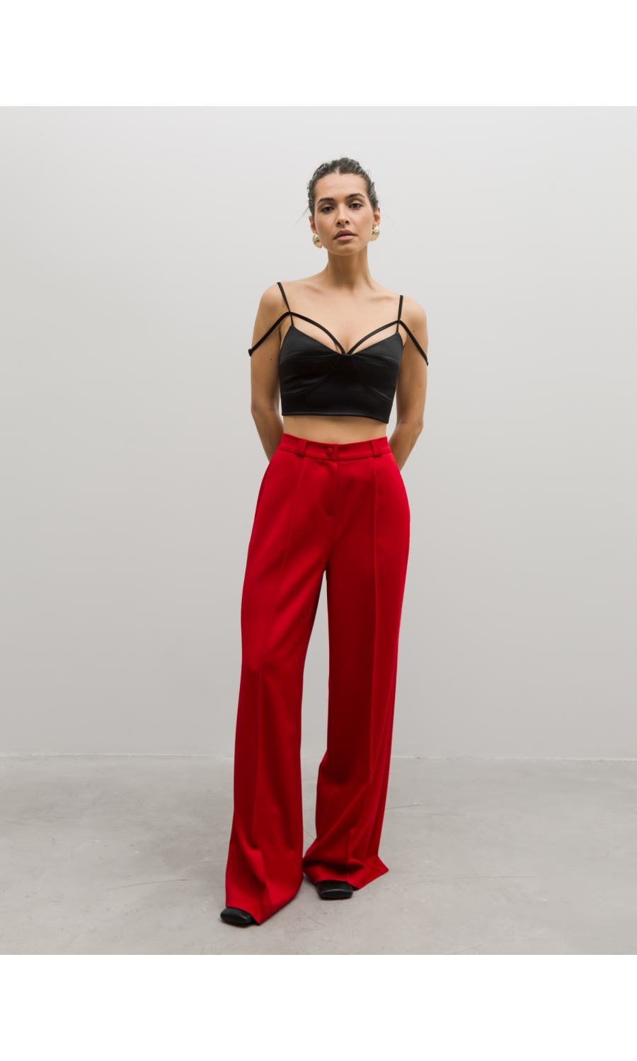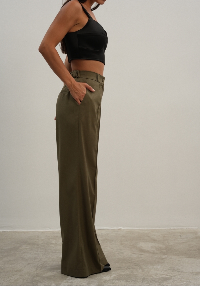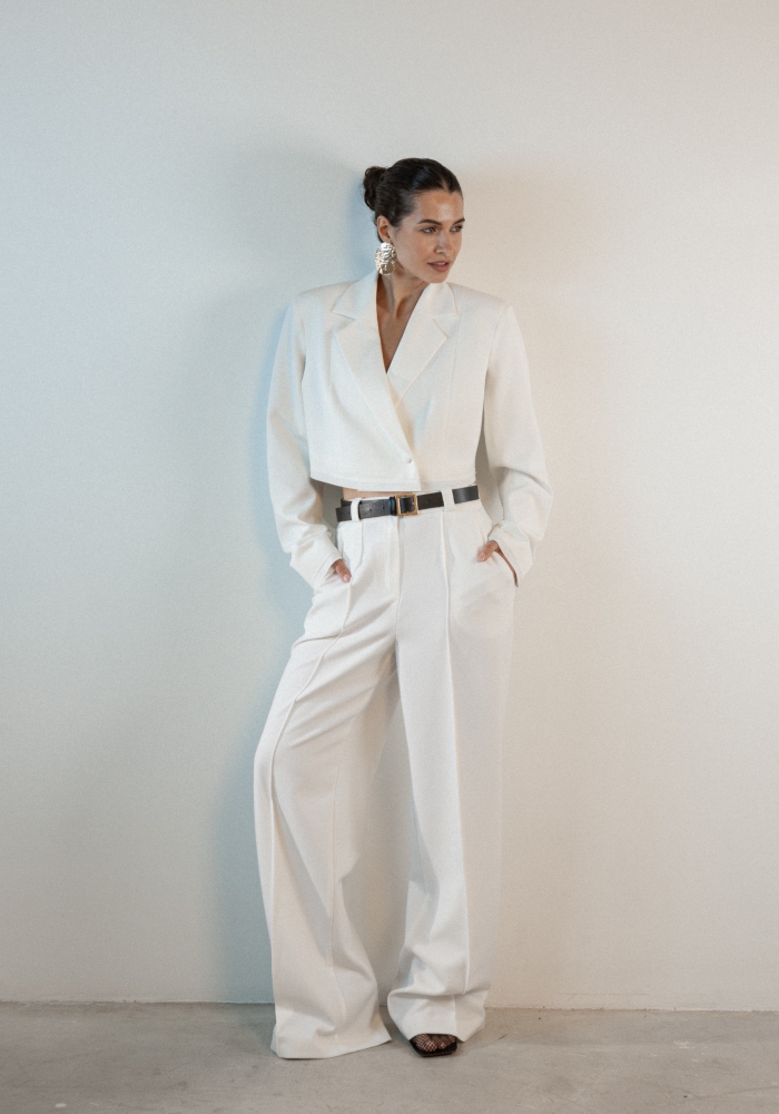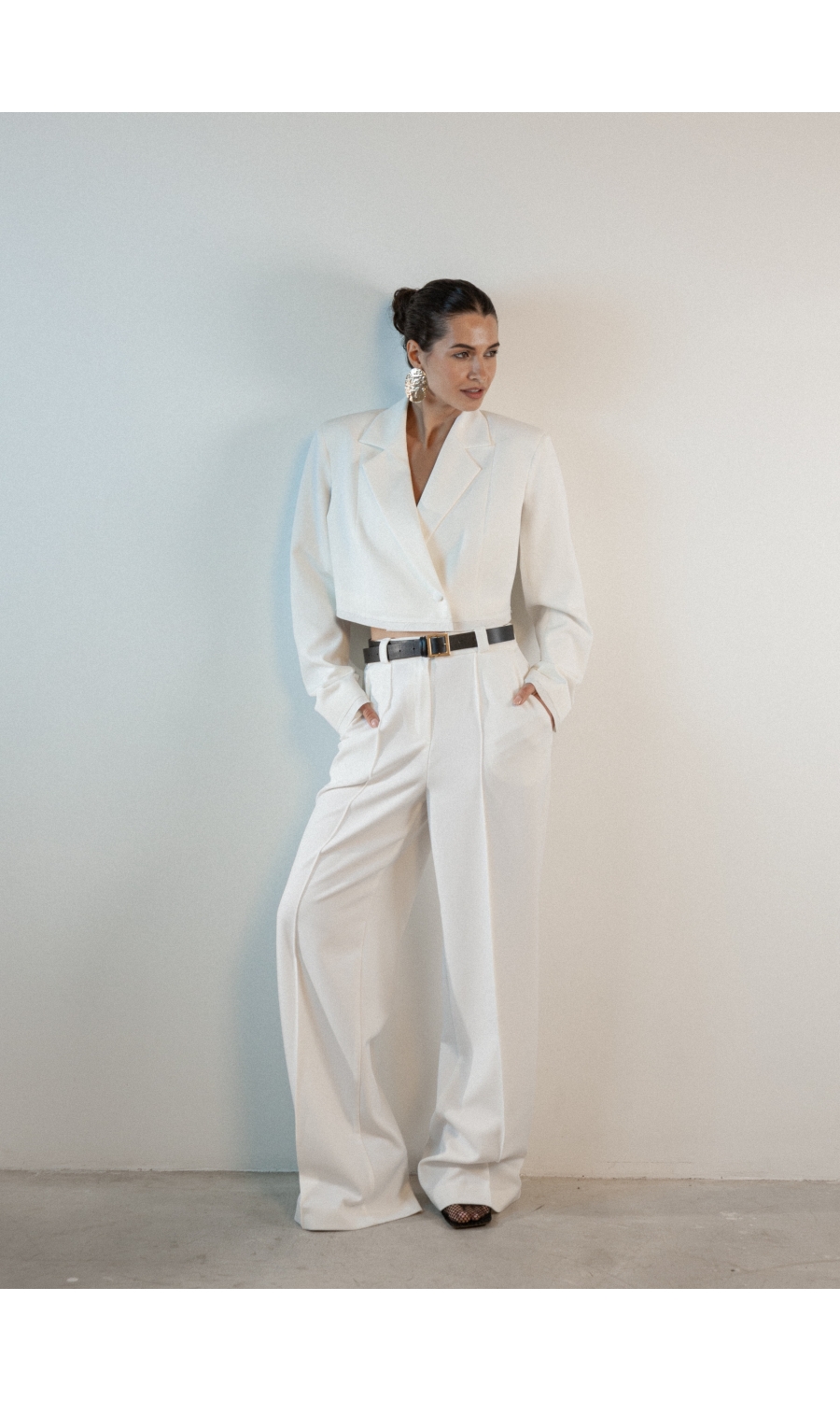 Брюки палаццо выполнены из поливискозной мягкой костюмной ткани. Модель имеет застроченную стрелку. Застегиваются на молнию и пуговицу. Сзади на линии талии расположена резинка для комфортной посадки. В боковых швах имеют два глубоких боковых кармана и два декоративных кармана-обманки на спинке изделия.