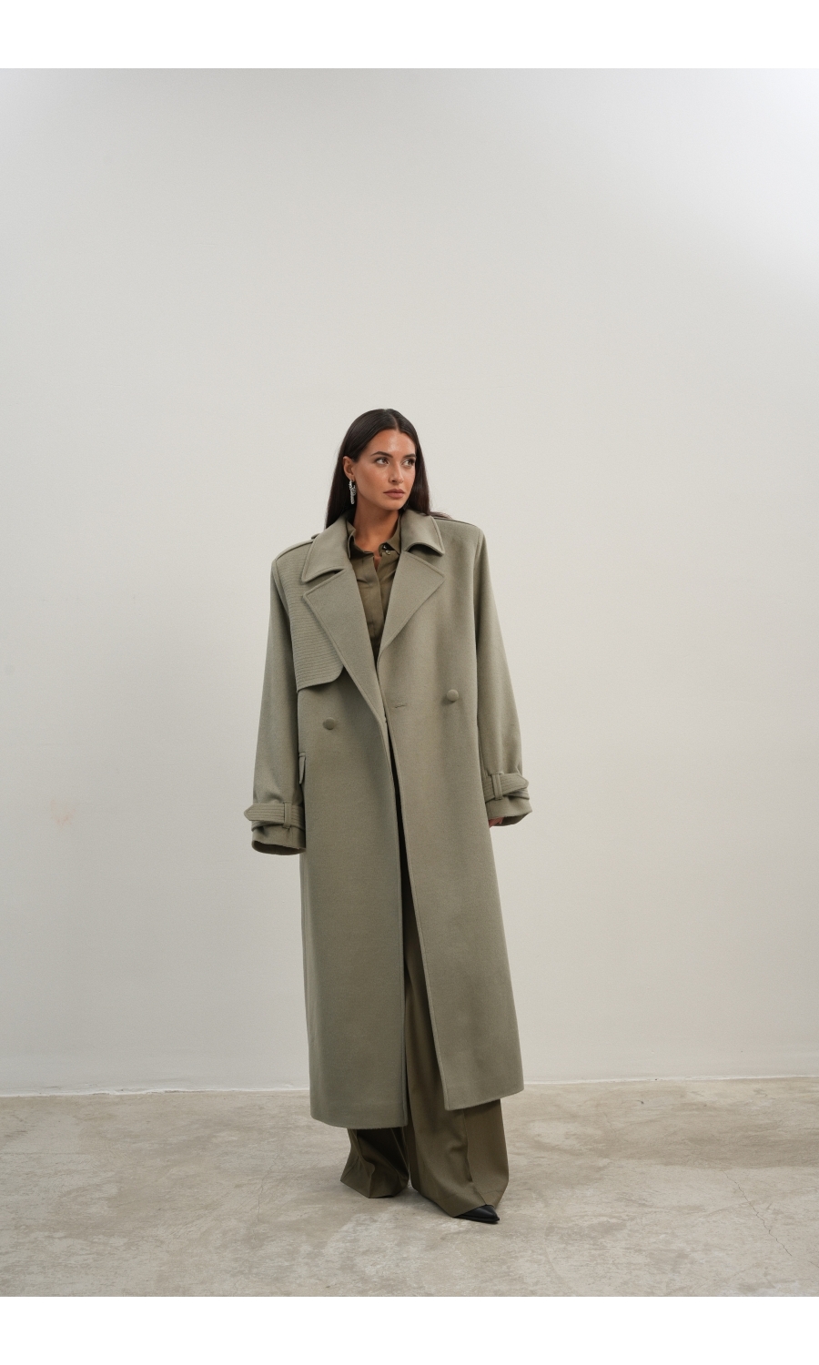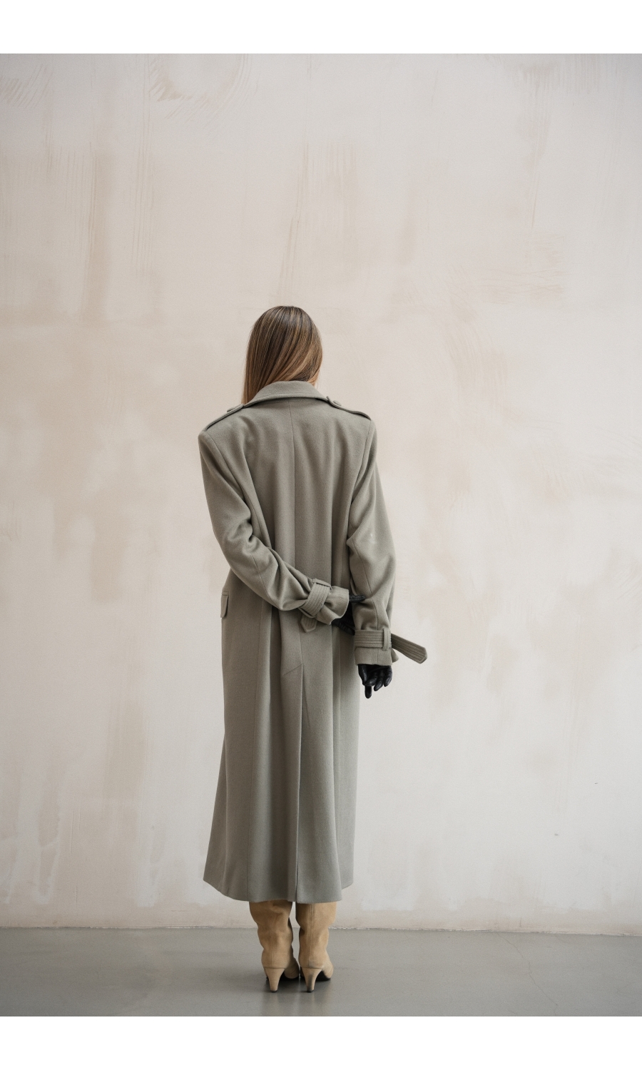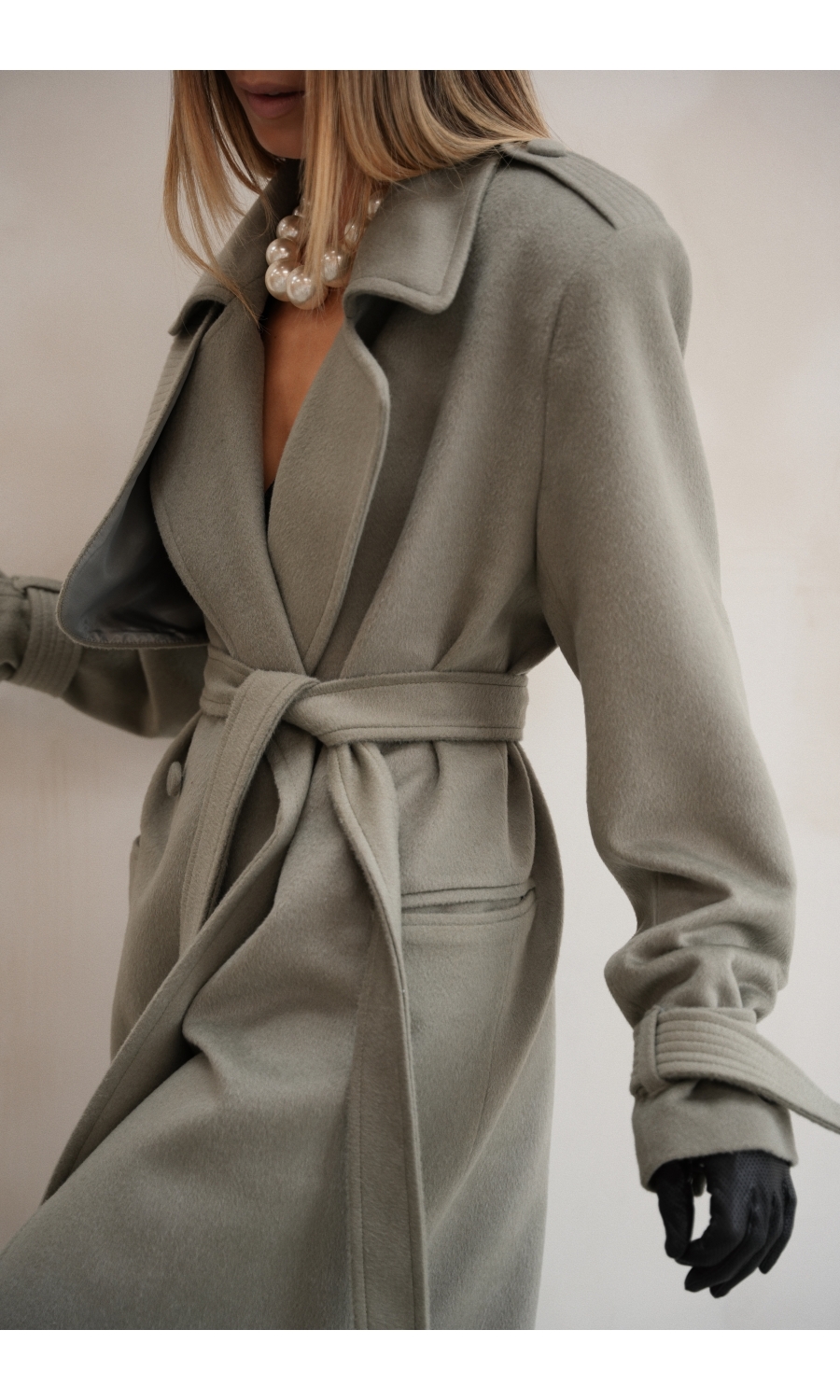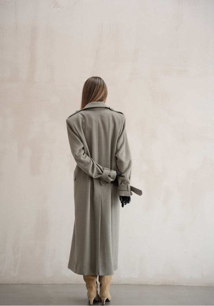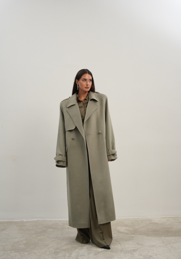 Пальто-тренч выполнено из качественной пальтовой ткани с большим содержанием шерсти. Простроченная кокетка, погоны, хлястики усложняют и добавляют характера образу. Температурный режим до - 10*.