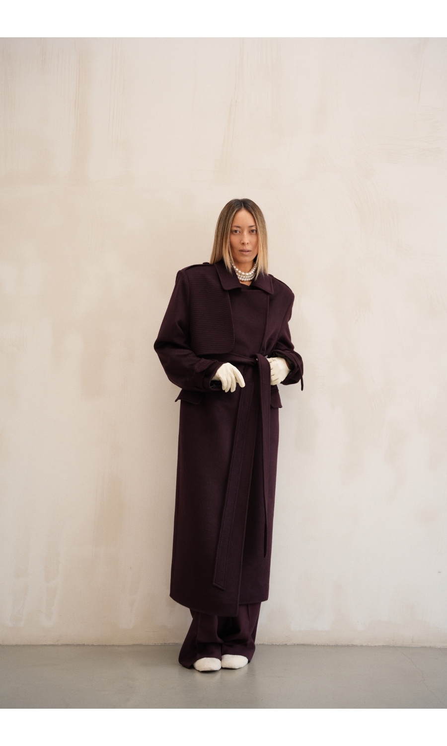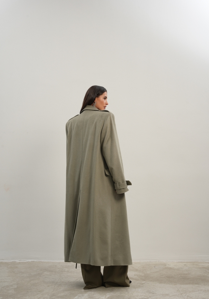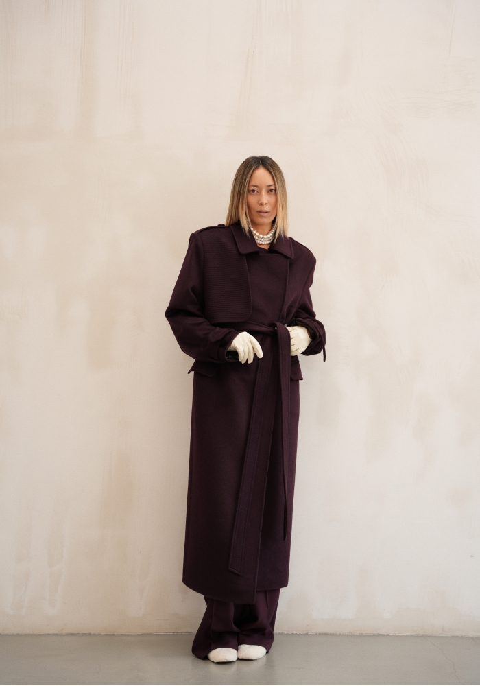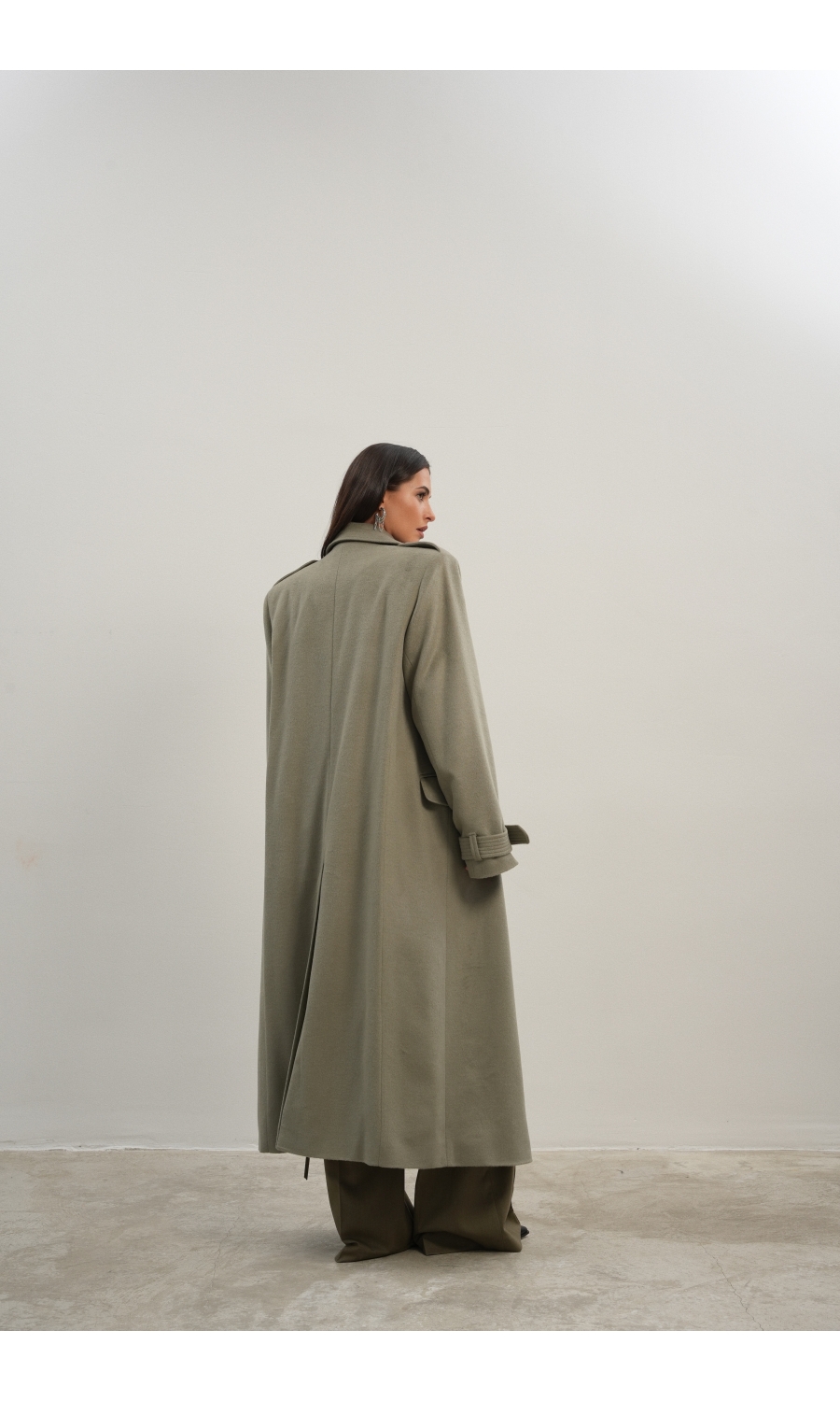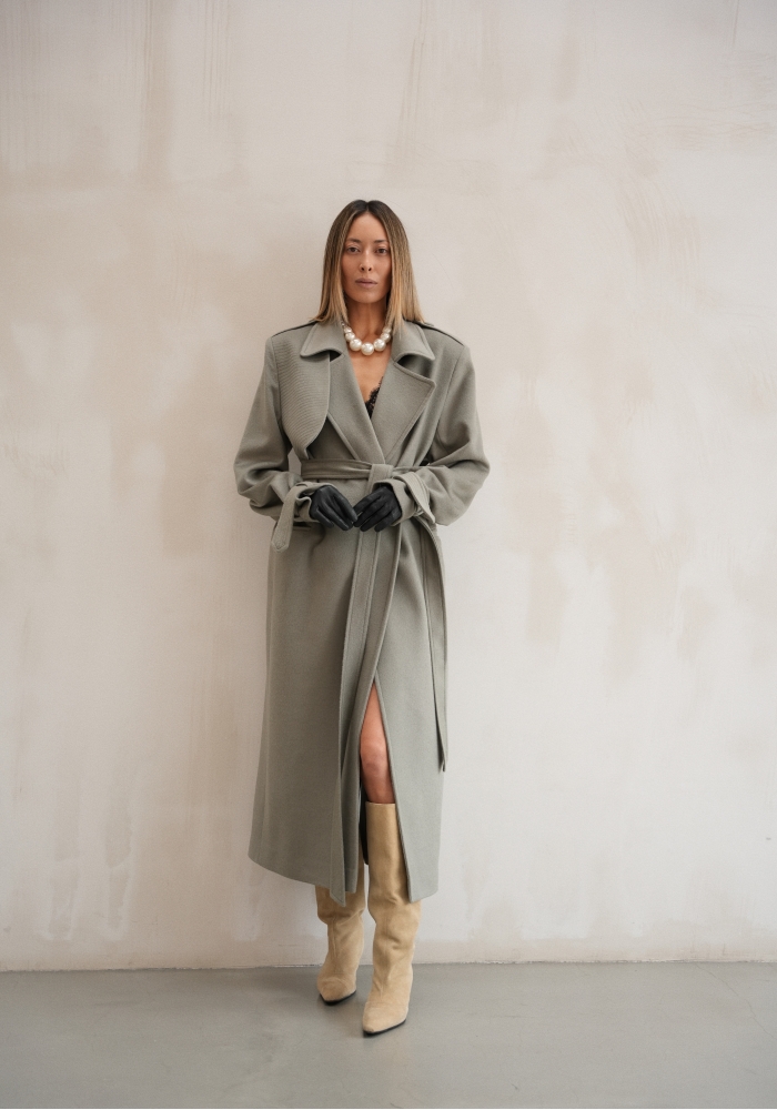 Пальто-тренч выполнено из качественной пальтовой ткани с большим содержанием шерсти. Простроченная кокетка, погоны, хлястики усложняют и добавляют характера образу. Температурный режим до - 10*.