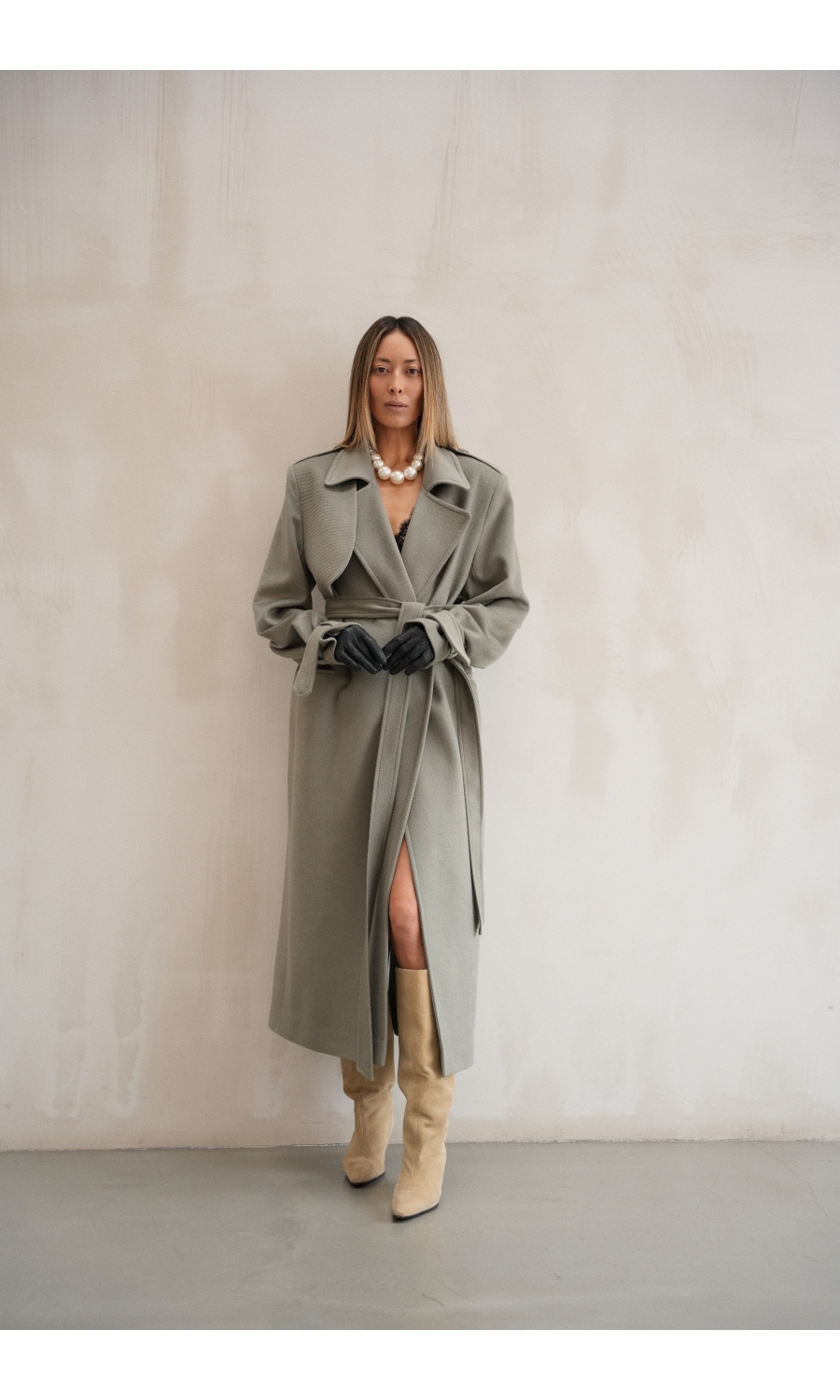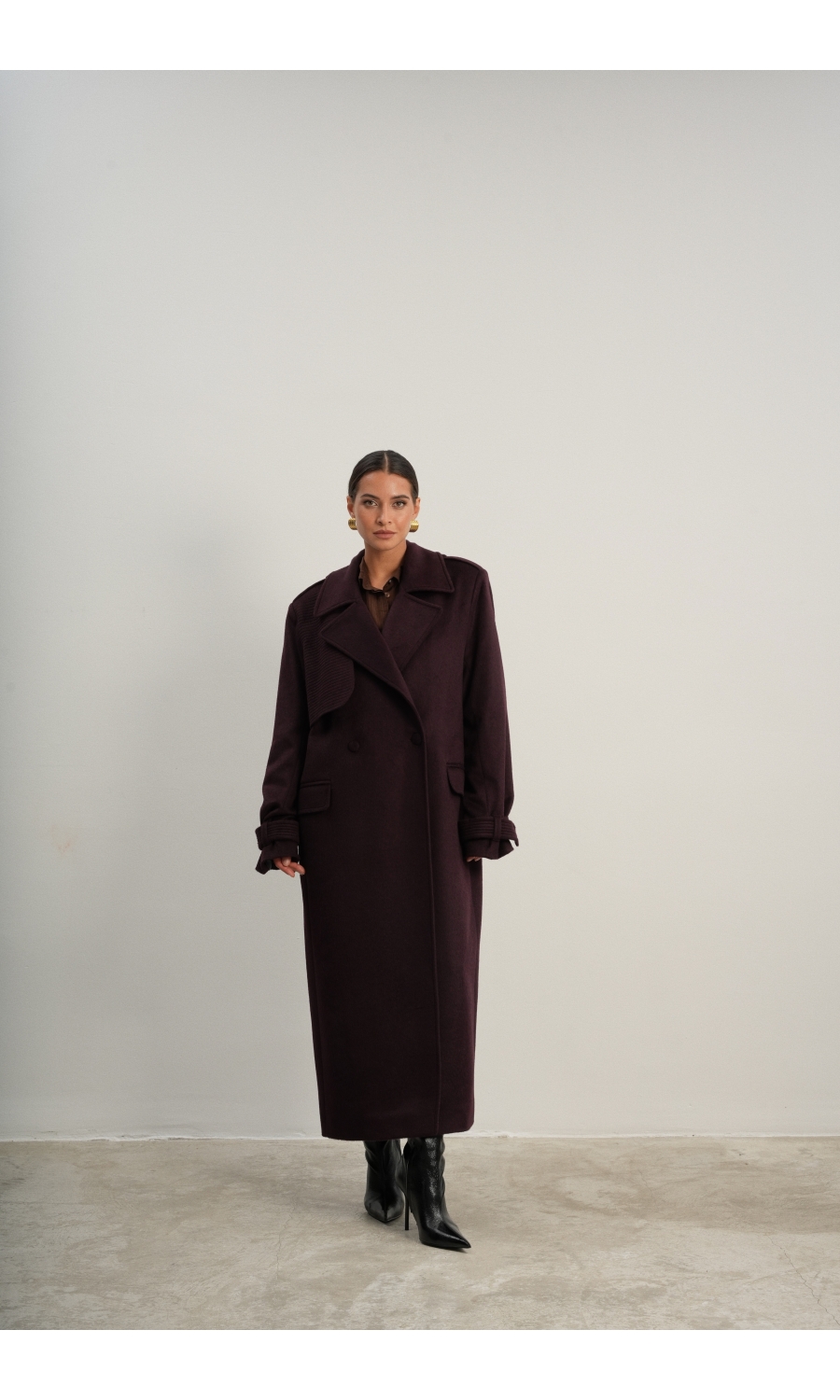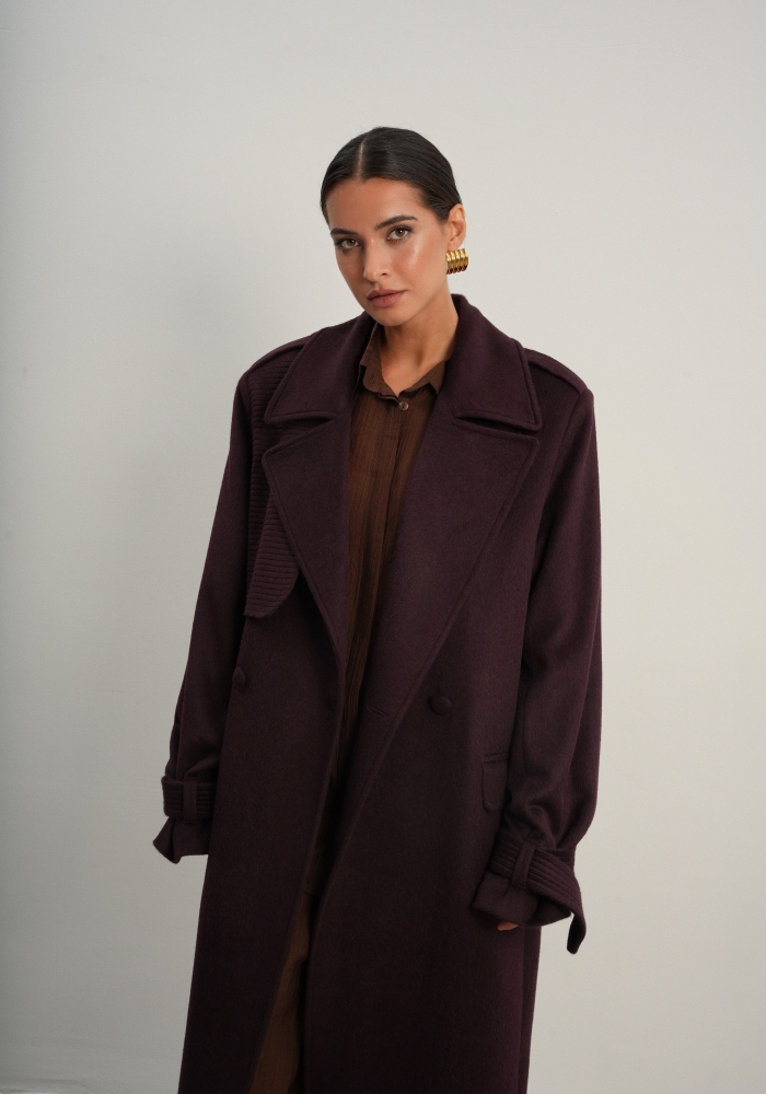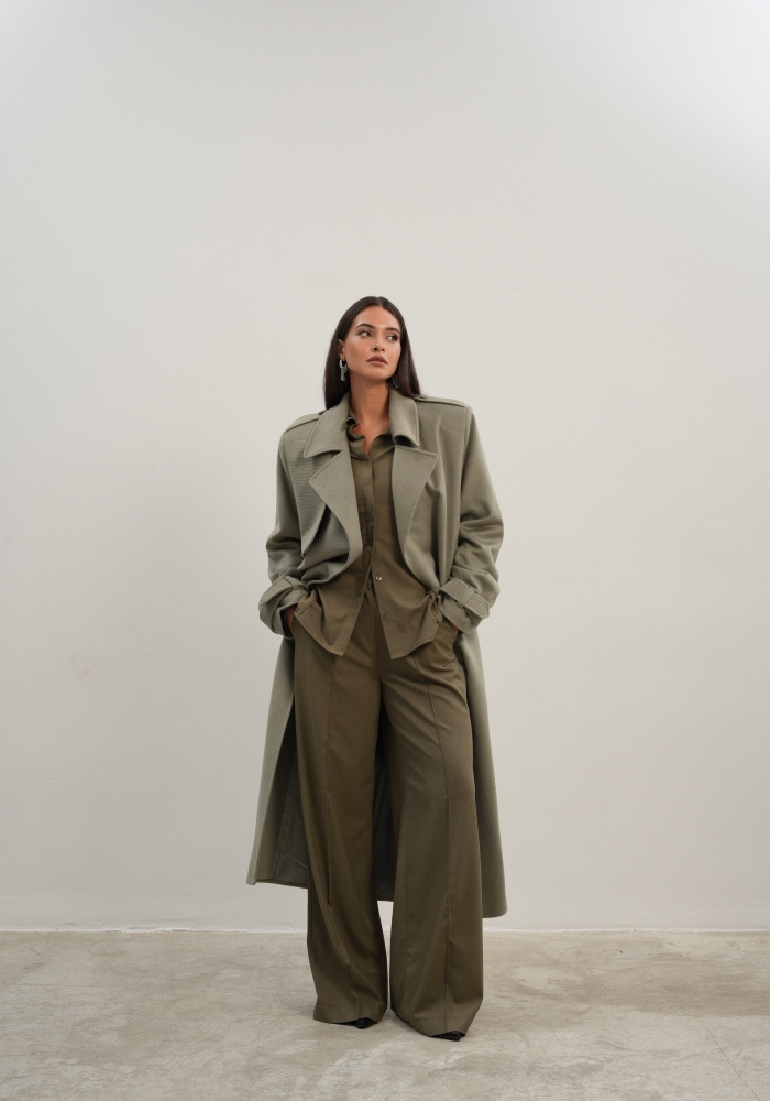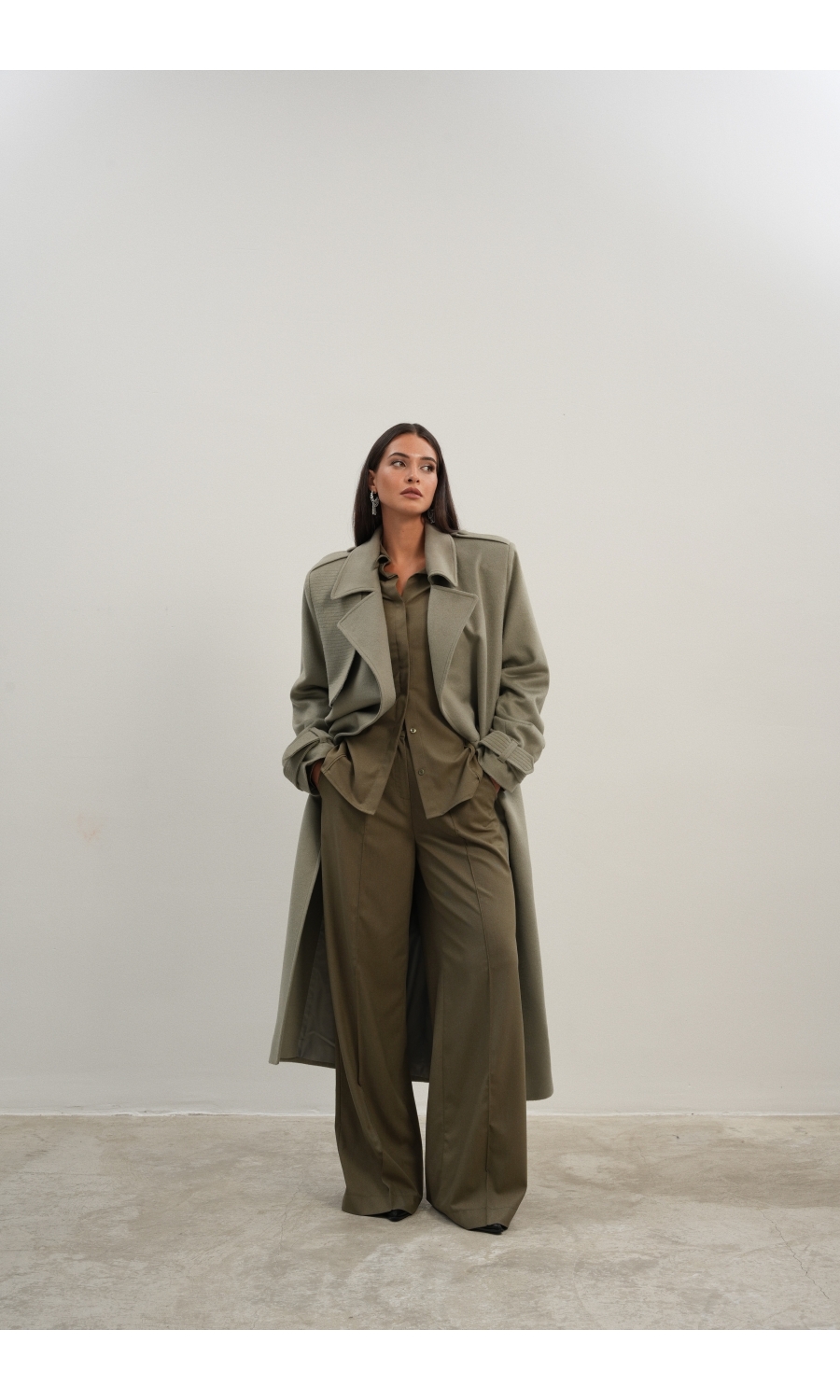 Пальто-тренч выполнено из качественной пальтовой ткани с большим содержанием шерсти. Простроченная кокетка, погоны, хлястики усложняют и добавляют характера образу. Температурный режим до - 10*.