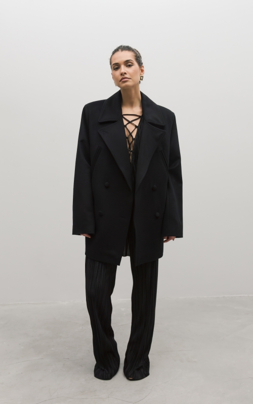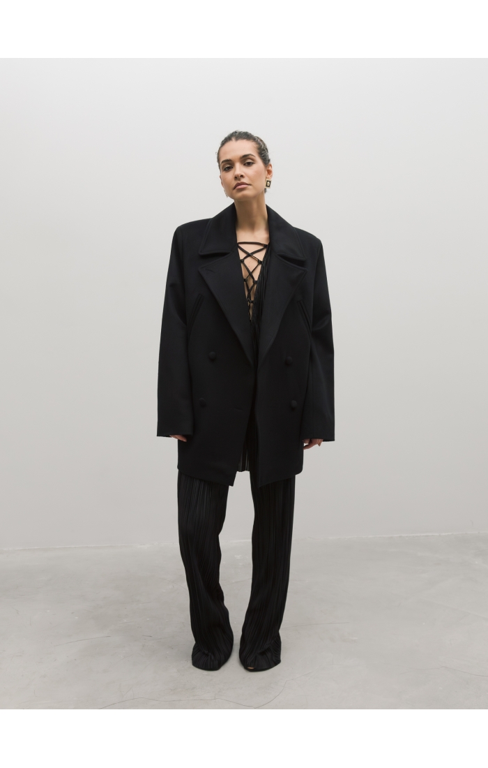 Полупальто выполнено из итальянской пальтовой ткани, с большим содержанием шерсти. Двубортная модель прямого кроя, представлена в едином размере, на подкладе. Температурный режим до -10*.