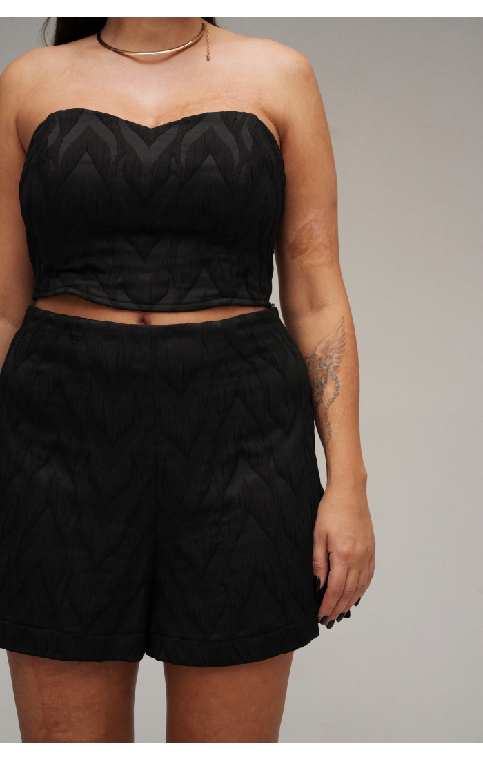 Шорты выполнены из фактурной ткани. Дополните образ изделиями из коллекции Enigma.