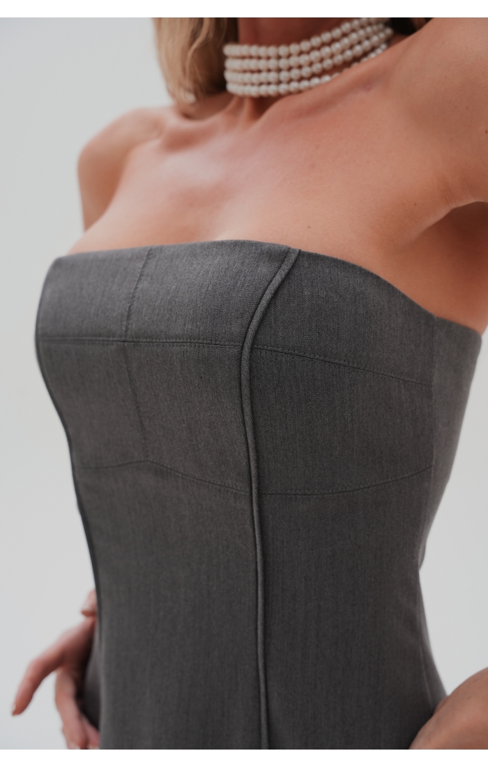 Платье бандо в длине мини выполнено из поливискозной костюмной ткани. Платье на подкладе, рельефные швы создают эффект корсетного платья. Сочетайте с жакетами-кейпами из нашей коллекции.