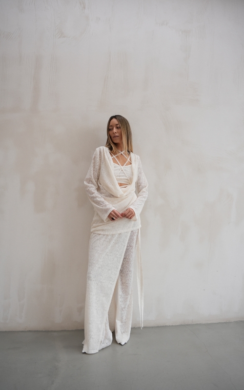 Юбка-баска из эластичного гипюра. Баску можно приобрести как самостоятельное изделие внедряя её на джинсы, юбки, платья и др. Также Вы можете дополнить образ изделиями из коллекции "Афродита", а именно: топ, брюки-клеш, платье мини, платье-кимоно.